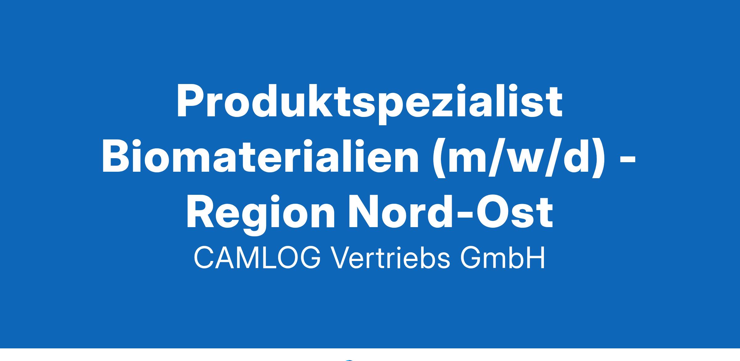zur Verstärkung unseres Vertriebsteams suchen wir zum nächstmöglichen Zeitpunkt einenProduktspezialist Biomaterialien (m/w/d) Region Nord-Ost(Brandenburg, Berlin, Mecklenburg-Vorpommern)Das Unternehmen CamlogCamlog ist ein führender Anbieter von Komplettsystemen und Produkten für die dentale Implantologie und restaurative Zahnheilkunde.Langjährige Forschungs- und Entwicklungserfahrung, hohe Qualitätsstandards, ein faires Preis-Leistungs-Verhältnis und praxisbezogene Serviceleistungen haben Camlog zu einer der ersten Adressen gemacht. Unsere Implantatsysteme sind für eine optimierte Anzahl von Systemkomponenten bei gleichzeitig einfacher und effizienter Anwendung bekannt.Individuelle Dienstleistungen und Services bieten Mehrwerte in der partnerschaftlichen Zusammenarbeit mit unseren Kunden. Darüber hinaus bieten wir ein breitgefächertes Fortbildungsangebot, bei dem unsere Experten geballtes Wissen zu Fach- und Managementthemen vermitteln.Ihre AufgabenEnge Zusammenarbeit mit den Vertriebsmanagern vor OrtVerkauf von Biomaterial-ProduktenKnochenersatzmaterialMembraneRekonstruktive GewebematrixWundauflagenKnochenfixierung und MembranstabilisierungSpezifische Unterstützung und Beratung für bestehende KundenNeukundengewinnungAufbau und Ausbau von NetzwerkenAktivitäten als ReferentErreichung der Umsatz- und Verkaufsziele im VerkaufsgebietTeilnahme an Messen und KongressenOrganisation und Koordination von SchulungenBeobachtung des DentalmarktesIhr ProfilVertriebserfahrungAusbildung zum Pharmareferenten (m/w/d) wünschenswertWeiterbildungswilleGute MS-Office-KenntnisseTeamfähigkeitWir bietenEinen sicheren Arbeitsplatz im Wachstumssektor Gesundheit mit hervorragenden ZukunftsaussichtenMitgestaltungsmöglichkeiten in dem attraktiven Umfeld des Dentalmarktes mit spannenden ZielgruppenFlache Hierarchien und ein hochmotiviertes Team, das viel Raum für eigenverantwortliches Arbeiten lässtEine intensive Einarbeitung in alle relevanten UnternehmensbereicheModerne Räumlichkeiten und ArbeitsmittelUmfangreiche Sozialleistungen, Bezuschussungen (z. B. zum Fitnessstudio, JobRad), Möglichkeit für die betriebliche Altersvorsorge, Betriebliche Krankenversicherung und Programme zur GesundheitsförderungIndividuelle WeiterbildungsmöglichkeitenFirmen-PKW auch zur privaten NutzungGestalten Sie Ihre Zukunft mit unsCamlog ist ein führender Anbieter von Komplettsystemen und Produkten für die dentale Implantologie und restaurative Zahnheilkunde. Langjährige Forschungs- und Entwicklungserfahrung, hohe Qualitätsstandards, ein faires Preis-Leistungs-Verhältnis und praxisbezogene Serviceleistungen haben Camlog zu einer der ersten Adressen gemacht.Besuchen Sie uns auf Social Media:Camlog Vertriebs GmbH