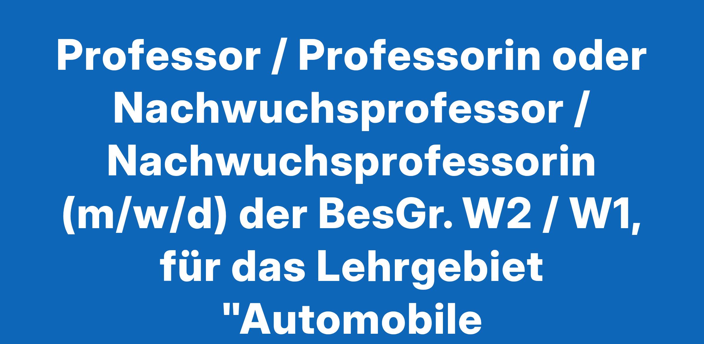 Professor / Professorin oder Nachwuchsprofessor / Nachwuchsprofessorin (m/w/d) der BesGr. W2 / W1, für das Lehrgebiet "Automobile Softwareentwicklung"