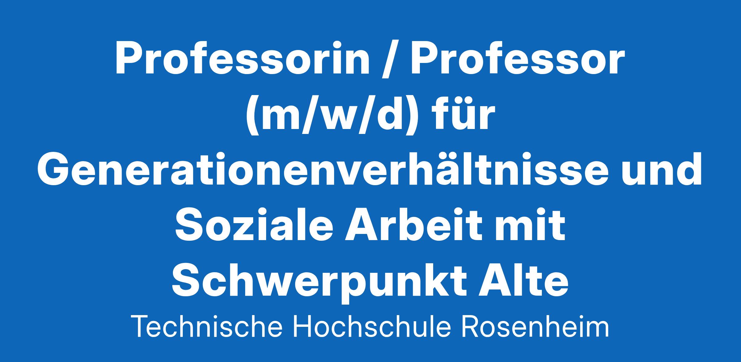 Die Technische Hochschule Rosenheim ist eine regional verwurzelte Hochschule mit internationalem Renommee. Sie verbindet praxisnahe Forschung mit innovativer Nachwuchsförderung in den Bereichen Technik, Wirtschaft, Gestaltung, Gesundheit und Soziales. Das interdisziplinäre Miteinander der Fakultäten und Einrichtungen garantiert hochwertigen Erkenntnisgewinn und ausgezeichnete Lehre. Zu den gelebten Werten der TH Rosenheim zählen Nachhaltigkeit, Familienfreundlichkeit und Serviceorientierung. Für die Fakultät für Sozialwissenschaften am Standort Mühldorf suchen wir zum nächstmöglichen Zeitpunkt eine / einen Professorin / Professor (m/w/d) – BesGr W2 für Generationenverhältnisse und Soziale Arbeit mit Schwerpunkt Alter zunächst befristet auf fünf Jahre. Bei positiver Evaluierung besteht nach fünf Jahren grundsätzlich die Möglichkeit einer unbefristeten Beschäftigung. Kennziffer 2025-102-PROF-SW Die Professur umfasst die Übernahme von Lehrveranstaltungen in den Bereichen Generationenverhältnisse und Soziale Arbeit mit Schwerpunkt Alter sowie in Grundlagenmodulen der Sozialen Arbeit wie auch in den angrenzenden Studiengängen der Fakultät für Sozialwissenschaften die Neugestaltung spezifischer Module in diesen Studienbereichen sowie die konzeptionelle Weiterentwicklung der Fakultät Sozialwissenschaften im Ganzen Modulverantwortungen und die Betreuung und Koordination von Lehrbeauftragten Mitarbeit in der Selbstverwaltung sowie Betreuung von Abschlussarbeiten die Übernahme von Lehre im Umfang von 18 Semesterwochenstunden Mitarbeit an der Weiterentwicklung des Lehrgebietes und in der Selbstverwaltung sowie Engagement bei Projekten der angewandten Forschung und Entwicklung und in der Weiterbildung Ihre Dienstaufgaben richten sich nach Art. 59 des Bayerischen Hochschulinnovationsgesetzes. Ihr Lehrgebiet beinhaltet dabei auch allgemeine Grundlagenfächer im Studiengang Soziale Arbeit und die Lehre in angrenzenden Studiengängen sowie die Durchführung von englischsprachigen Vorlesungen und Praktika. Was Sie mitbringen ein abgeschlossenes Hochschulstudium in Sozialer Arbeit oder in einer angrenzenden Disziplin, vorzugsweise z. B. Erziehungswissenschaft, Sozialpädagogik, Soziologie, Gesundheitswissenschaften oder Soziale Gerontologie (Bei ausländischen Hochschulabschlüssen ist zur abschließenden Beurteilung der Einstellungsvoraussetzungen im Laufe des Einstellungsverfahrens zwingend eine Zeugnisbewertung der ZAB vorzulegen.) eine durch Forschungs- und Publikationstätigkeit ausgewiesene wissenschaftliche Expertise, bspw. in einigen der folgenden Themenfelder: Generationenverhältnisse und -beziehungen in alternden Gesellschaften, berufliche Integration alter Menschen, Altern in Institutionen, gesundheitliche Versorgung alter Menschen, Krankheit und Behinderung, Armut und Teilhabe, Vereinsamung und soziale Inklusion im Alter ausgewiesene methodisch-praktische Erfahrung im Themenbereich der Professur mit Fokus auf ältere Menschen einschlägige Lehrerfahrung in akademischen Kontexten die besondere Befähigung zu wissenschaftlicher Arbeit ist in der Regel durch die Qualität einer Promotion nachzuweisen didaktische und pädagogische Eignung besondere Leistungen bei der Anwendung oder Entwicklung wissenschaftlicher Erkenntnisse und Methoden, nachgewiesen in einer mindestens fünfjährigen beruflichen Praxis nach dem Hochschulabschluss – davon mindestens drei Jahre außerhalb des Hochschulbereichs; der Nachweis der außerhochschulischen Praxis kann in besonderen Fällen dadurch erfolgen, dass über einen Zeitraum von mindestens fünf Jahren ein erheblicher Teil der beruflichen Tätigkeit in Kooperation zwischen Hochschule und außerhochschulischer Praxis erbracht wurde idealerweise anerkannte Zusatzqualifikation(en), wie z. B. im Case- oder Care-Management, Vernetzung in einschlägigen Fachgesellschaften sowie in praktischen Kontexten der Sozialen Arbeit Was wir bieten eine anspruchsvolle und eigenverantwortliche Tätigkeit in einem kollegialen und innovativen Umfeld vielfältige Weiter- und Fortbildungsmöglichkeiten verschiedene Angebote, um Familie und Beruf besser zu vereinbaren, z. B. Ferien- und Notfallbetreuung EGYM Wellpass und betriebliche Vorsorgeuntersuchungen attraktive Vergünstigungen, z. B. JobRad, Jobticket und benefits.me Die Technische Hochschule Rosenheim verpflichtet sich, die berufliche Gleichstellung aller Menschen, unabhängig von deren Herkunft, Hautfarbe, Religion, Alter und sexueller Identität, zu fördern. Wir möchten qualifizierte Frauen, die sich für eine Tätigkeit in Forschung und Lehre begeistern können, ausdrücklich zu einer Bewerbung motivieren. Sie können sich gerne an das Büro der Hochschulfrauenbeauftragten unter der E-Mail-Adresse frauenbeauftragte@th-rosenheim.de wenden. Schwerbehinderte Bewerberinnen / Bewerber (m/w/d) werden bei ansonsten im Wesentlichen gleicher Eignung, Befähigung und fachlicher Leistung bevorzugt eingestellt. In das Beamtenverhältnis kann berufen werden, wer das 52. Lebensjahr noch nicht vollendet hat. Damit wir Ihre Bewerbung effizient und zeitnah bearbeiten können, bewerben Sie sich bitte online über unser Bewerbermanagement (Bewerbungsschluss: 02.03.2025 ). Hinweise zu den nötigen Unterlagen finden Sie auch auf unserer Website unter http://www.th-rosenheim.de/die-hochschule/karriere-die-hochschule-als-arbeitgeber/. Bei Rückfragen zu den formellen Berufungsvoraussetzungen wenden Sie sich bitte an Frau Breckl-Stock, Tel. 08031 805-2267, E-Mail: eva.breckl-stock@th-rosenheim.de. Bei Rückfragen zu den fachlichen Voraussetzungen wenden Sie sich bitte an die Vorsitzende des Berufungsausschusses, Frau Prof. Dr. Christa Neuberger, Tel. 08031 805-4526, E-Mail: christa.neuberger@th-rosenheim.de. www.th-rosenheim.de Technische Hochschule Rosenheim, Hochschulstraße 1, 83024 Rosenheim