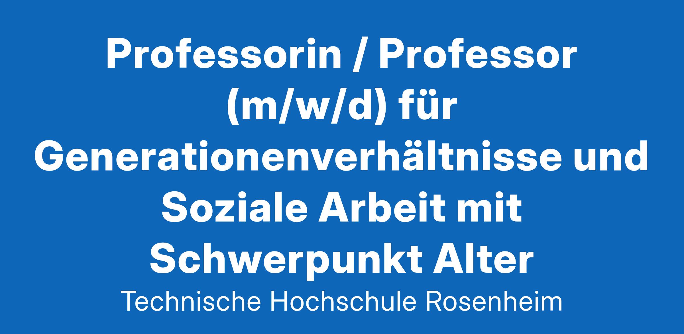 Kennziffer 2025-102-PROF-SW Die Professur umfasst die Übernahme von Lehrveranstaltungen in den Bereichen Generationenverhältnisse und Soziale Arbeit mit Schwerpunkt Alter sowie in Grundlagenmodulen der Sozialen Arbeit wie auch in den angrenzenden Studiengängen der Fakultät für Sozialwissenschaften die Neugestaltung spezifischer Module in diesen Studienbereichen sowie die konzeptionelle Weiterentwicklung der Fakultät Sozialwissenschaften im Ganzen Modulverantwortungen und die Betreuung und Koordination von Lehrbeauftragten Mitarbeit in der Selbstverwaltung sowie Betreuung von Abschlussarbeiten die Übernahme von Lehre im Umfang von 18 Semesterwochenstunden Mitarbeit an der Weiterentwicklung des Lehrgebietes und in der Selbstverwaltung sowie Engagement bei Projekten der angewandten Forschung und Entwicklung und in der Weiterbildung Ihre Dienstaufgaben richten sich nach Art. 59 des Bayerischen Hochschulinnovationsgesetzes. Ihr Lehrgebiet beinhaltet dabei auch allgemeine Grundlagenfächer im Studiengang Soziale Arbeit und die Lehre in angrenzenden Studiengängen sowie die Durchführung von englischsprachigen Vorlesungen und Praktika. Was Sie mitbringen ein abgeschlossenes Hochschulstudium in Sozialer Arbeit oder in einer angrenzenden Disziplin, vorzugsweise z. B. Erziehungswissenschaft, Sozialpädagogik, Soziologie, Gesundheitswissenschaften oder Soziale Gerontologie (Bei ausländischen Hochschulabschlüssen ist zur abschließenden Beurteilung der Einstellungsvoraussetzungen im Laufe des Einstellungsverfahrens zwingend eine Zeugnisbewertung der ZAB vorzulegen.) eine durch Forschungs- und Publikationstätigkeit ausgewiesene wissenschaftliche Expertise, bspw. in einigen der folgenden Themenfelder: Generationenverhältnisse und -beziehungen in alternden Gesellschaften, berufliche Integration alter Menschen, Altern in Institutionen, gesundheitliche Versorgung alter Menschen, Krankheit und Behinderung, Armut und Teilhabe, Vereinsamung und soziale Inklusion im Alter ausgewiesene methodisch-praktische Erfahrung im Themenbereich der Professur mit Fokus auf ältere Menschen einschlägige Lehrerfahrung in akademischen Kontexten die besondere Befähigung zu wissenschaftlicher Arbeit ist in der Regel durch die Qualität einer Promotion nachzuweisen didaktische und pädagogische Eignung besondere Leistungen bei der Anwendung oder Entwicklung wissenschaftlicher Erkenntnisse und Methoden, nachgewiesen in einer mindestens fünfjährigen beruflichen Praxis nach dem Hochschulabschluss – davon mindestens drei Jahre außerhalb des Hochschulbereichs; der Nachweis der außerhochschulischen Praxis kann in besonderen Fällen dadurch erfolgen, dass über einen Zeitraum von mindestens fünf Jahren ein erheblicher Teil der beruflichen Tätigkeit in Kooperation zwischen Hochschule und außerhochschulischer Praxis erbracht wurde idealerweise anerkannte Zusatzqualifikation(en), wie z. B. im Case- oder Care-Management, Vernetzung in einschlägigen Fachgesellschaften sowie in praktischen Kontexten der Sozialen Arbeit Was wir bieten eine anspruchsvolle und eigenverantwortliche Tätigkeit in einem kollegialen und innovativen Umfeld vielfältige Weiter- und Fortbildungsmöglichkeiten verschiedene Angebote, um Familie und Beruf besser zu vereinbaren, z. B. Ferien- und Notfallbetreuung EGYM Wellpass und betriebliche Vorsorgeuntersuchungen attraktive Vergünstigungen, z. B. JobRad, Jobticket und benefits.me Die Technische Hochschule Rosenheim verpflichtet sich, die berufliche Gleichstellung aller Menschen, unabhängig von deren Herkunft, Hautfarbe, Religion, Alter und sexueller Identität, zu fördern. Wir möchten qualifizierte Frauen, die sich für eine Tätigkeit in Forschung und Lehre begeistern können, ausdrücklich zu einer Bewerbung motivieren. Sie können sich gerne an das Büro der Hochschulfrauenbeauftragten unter der E-Mail-Adresse wenden. Schwerbehinderte Bewerberinnen / Bewerber (m/w/d) werden bei ansonsten im Wesentlichen gleicher Eignung, Befähigung und fachlicher Leistung bevorzugt eingestellt. In das Beamtenverhältnis kann berufen werden, wer das 52. Lebensjahr noch nicht vollendet hat. Damit wir Ihre Bewerbung effizient und zeitnah bearbeiten können, bewerben Sie sich bitte online über unser Bewerbermanagement (Bewerbungsschluss: 02.03.2025 ). Hinweise zu den nötigen Unterlagen finden Sie auch auf unserer Website unter Bei Rückfragen zu den formellen Berufungsvoraussetzungen wenden Sie sich bitte an Frau Breckl-Stock, Tel. 08031 805-2267, E-Mail: Bei Rückfragen zu den fachlichen Voraussetzungen wenden Sie sich bitte an die Vorsitzende des Berufungsausschusses, Frau Prof. Dr. Christa Neuberger, Tel. 08031 805-4526, E-Mail: Technische Hochschule Rosenheim, Hochschulstraße 1, 83024 Rosenheim
