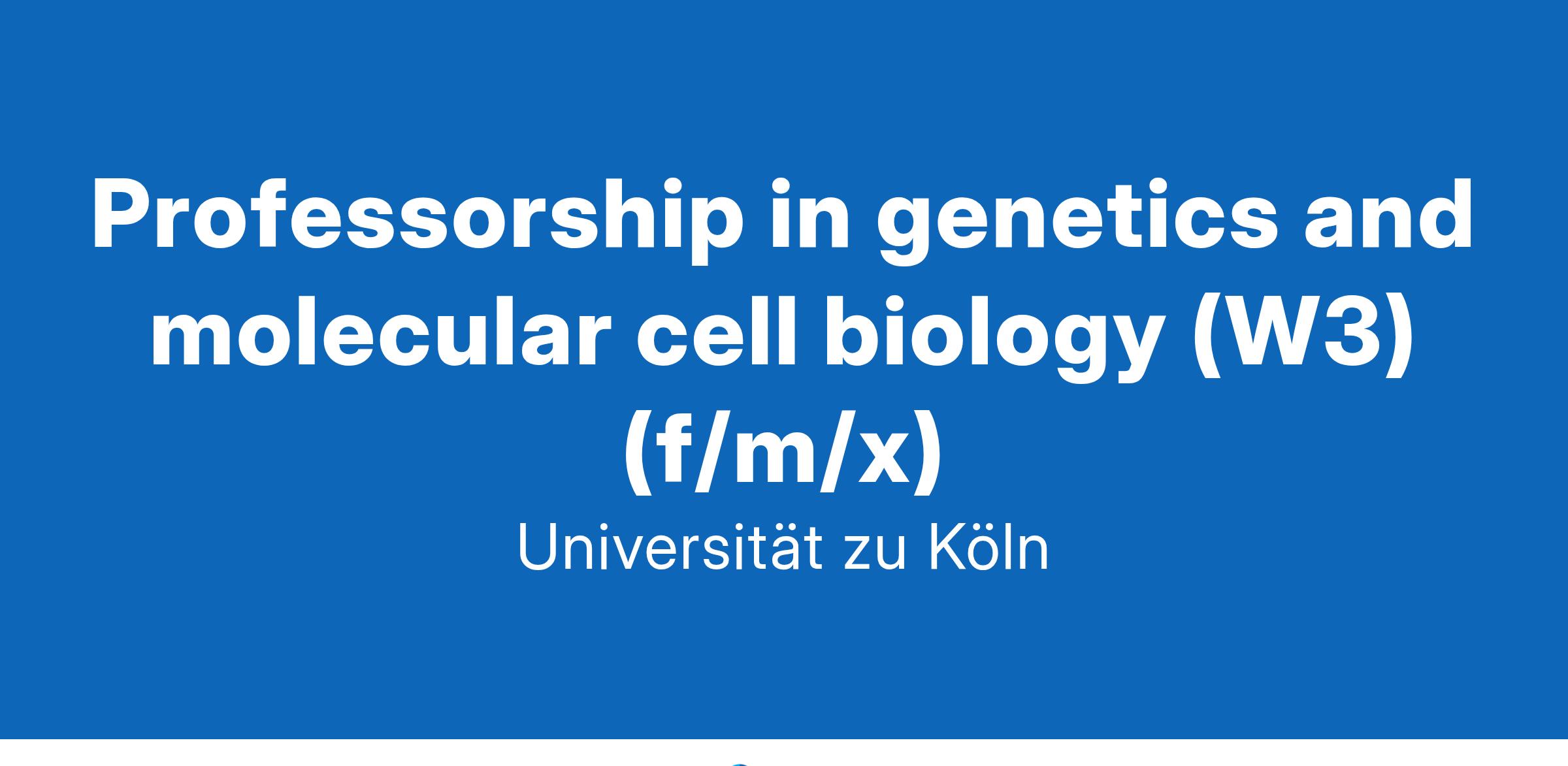 You are an internationally recognized researcher with a proven track record in genetics, molecular cell biology, and/or systems biology. Your research program fits to the established research directions of the Institute for Genetics. You are experienced in the acquisition of the third-party funding and supervision of young academics. A strong commitment to teaching, including a comprehensive teaching concept, is expected. Teaching experience on topics related to genetics, molecular cell biology, and/or systems