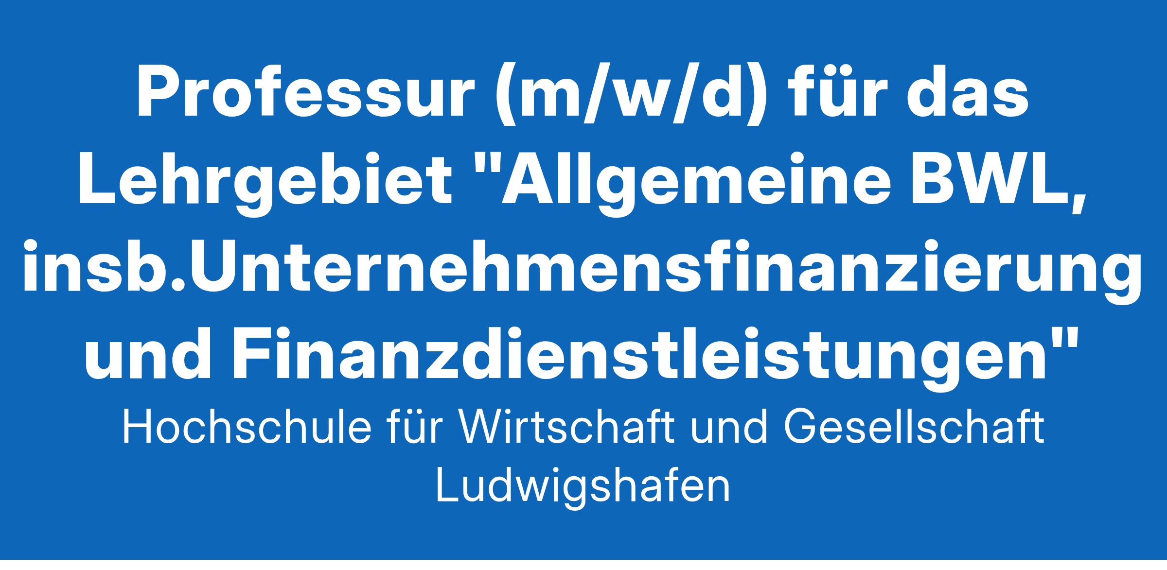 für das Lehrgebiet »Allgemeine BWL, insb. Unternehmensfinanzierung und Finanzdienstleistungen«