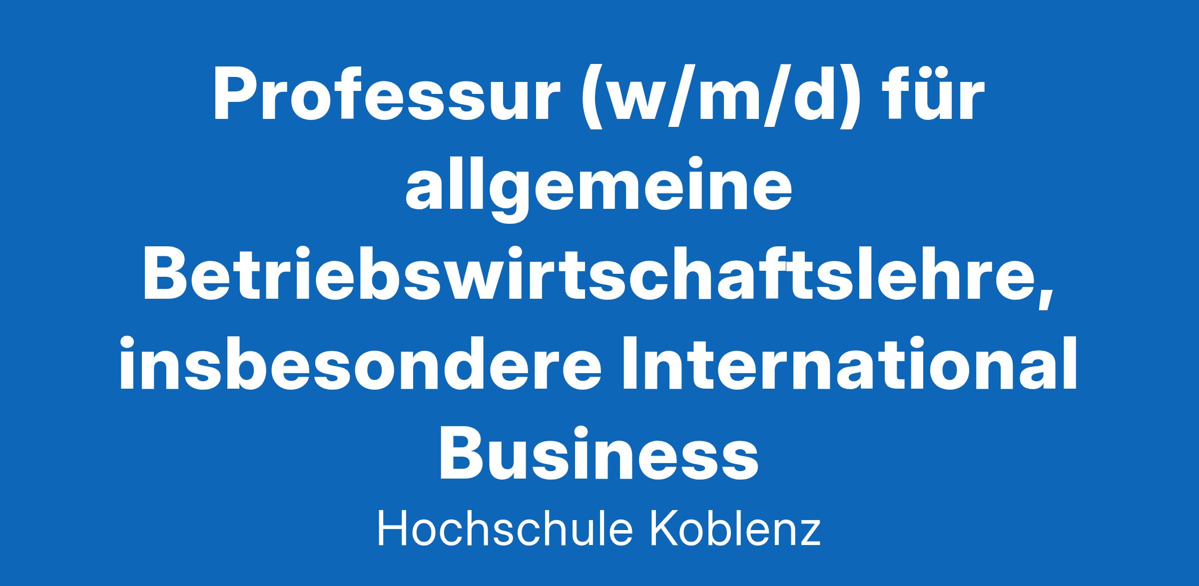 Im Fachbereich Wirtschaftswissenschaften ist am Standort Koblenz zum nächstmöglichen Zeitpunkt folgende Professur zu besetzen: