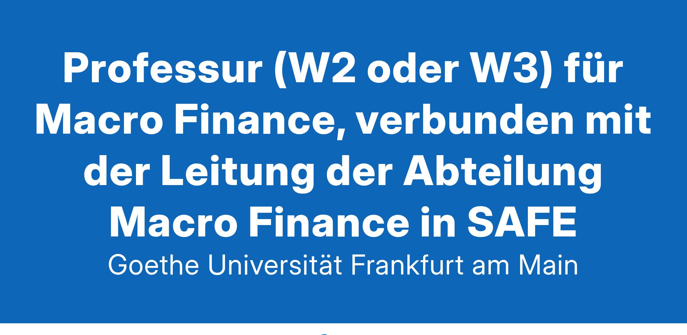 Professur (W2 oder W3) für Macro Finance, verbunden mit der Leitung der Abteilung Macro Finance in SAFE