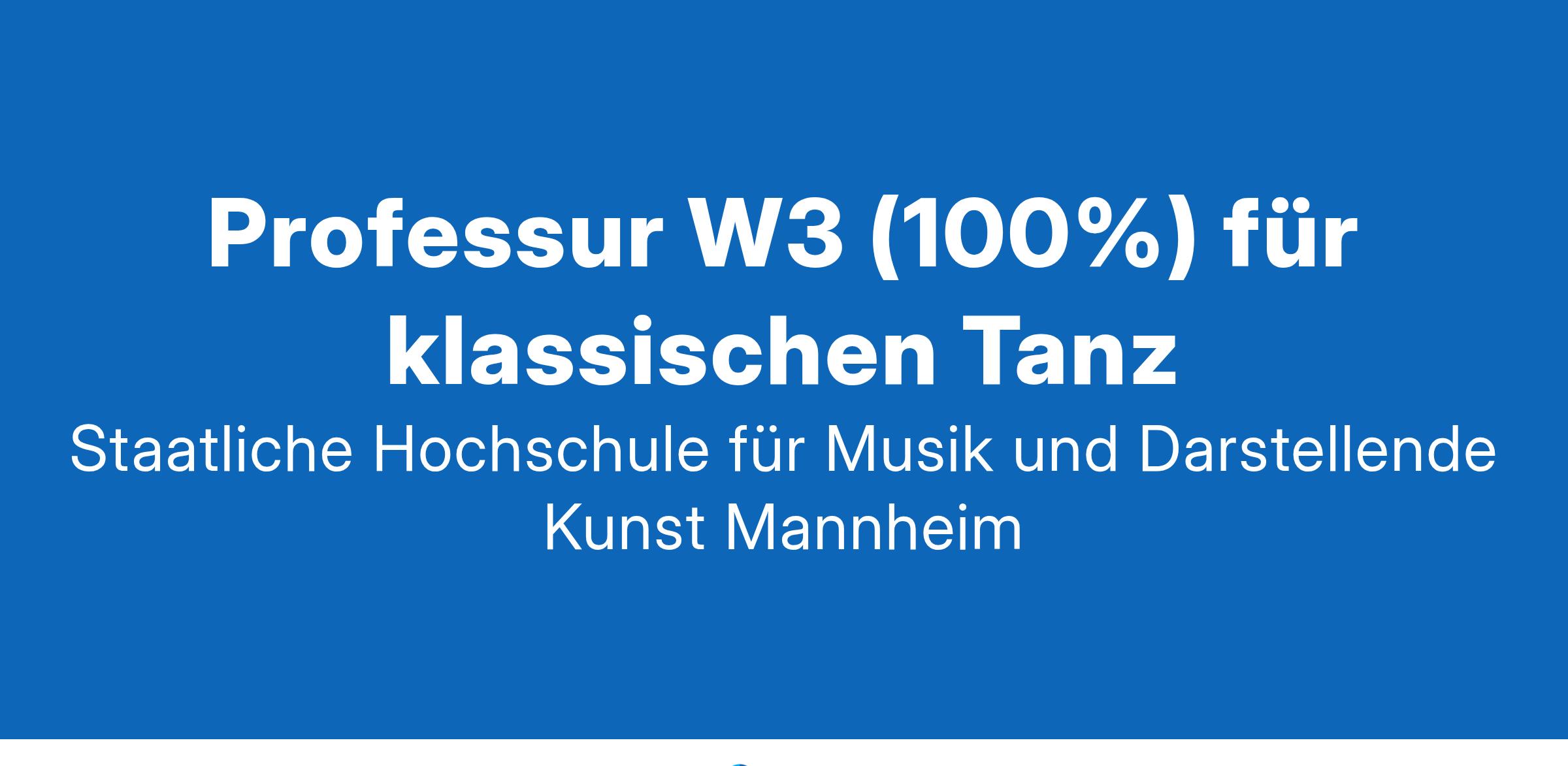 Von Bewerberinnen (w / m / d) wird eine ausgezeichnete Karriere als Bühnentänzerin (w / m / d) mit Schwerpunkt klassisches Ballett vorausgesetzt. Erwartet werden eine pädagogische Ausbildung im klassischen Tanz, langjährige pädagogische Erfahrungen mit Studierenden sowie Erfahrungen in weiteren Fächern, wie z.B. Methodik, Pas de deux oder Repertoire. Kenntnisse und Engagement im Zusammenhang mit organisatorischen Aufgaben sind erwünscht.