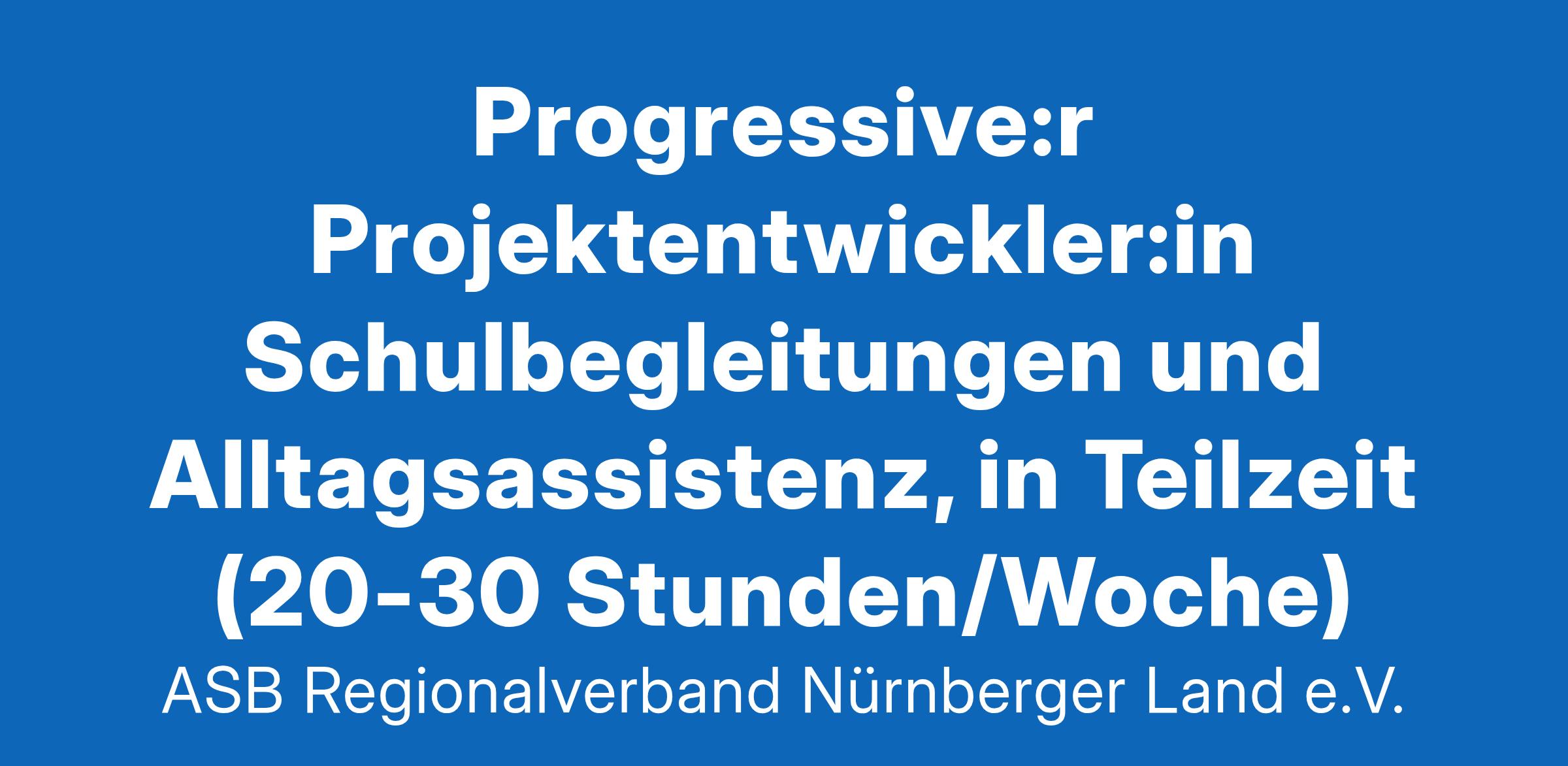 Wir suchen Dich! Der Arbeiter-Samariter-Bund Nürnberger Land e. V. widmet sich als moderner, leistungsstarker und überregionaler Wohlfahrtsverband mit mehr als 500 Mitarbeiter:innen vielfältigen sozialen Aufgaben. Er unterhält beispielsweise 22 Einrichtungen der Kinder- und Jugendarbeit, einen Linien- und Behindertenfahrdienst mit einer Fahrzeugflotte von 160 Fahrzeugen. Abgerundet werden die Leistungsangebote mit weiteren Diensten und Projekten der Sozialarbeit. #WunderKinder: Wir setzen uns ein für starke Kinder! Um das künftig noch besser machen zu können, suchen wir zum nächstmöglichen Zeitpunkt in Lauf a. d. Pegnitz eine:n Progressive:n Projektentwickler:in Schulbegleitung und Alltagsassistenz in Teilzeit mit 20 bis 30 Stunden pro Woche Was du mitbringst: Pädagogische Berufsausbildung, z. B. als Erzieher:in oder Heilerziehungspfleger:in bzw. Studium der Sozialen Arbeit, idealerweise mit ersten Berührungspunkten zur Schulbegleitung Starke kommunikative und soziale Kompetenz, um Netzwerke erfolgreich aufzubauen und langfristige Partnerschaften zu etablieren Selbstständige Arbeitsweise und eine hohe Eigenmotivation, um Projekte proaktiv voranzutreiben und dein Team zu entwickeln Props für Erfahrung im Vertrieb Dabei brauchen wir dich: Dein Job ist es, ein smartes und fundiertes Konzept für Schulbegleitungen und Integrationshelfer:innen zu entwickeln sowie ein breites und vertriebsorientiertes Netzwerk zwischen den relevanten Schnittstellen (Schulen, Jugendämter, Elterninitiativen etc.) zu etablieren. Später coachst und führst du die Assistent:innen in ihren Einsätzen. Neben den Schulbegleitungen sind auch Leistungen als Integrationshelfer:in oder Alltagsassistenz denkbar. Die Top-Gründe, warum du bei uns starten solltest: Eine zukunftsorientierte, verantwortungsvolle Position in einem spannenden Unternehmen, in dem du selbst gestalten und viel bewegen kannst Freiheit für kreative Ideen und die Möglichkeit, den Bereich gemeinsam zu entwickeln Leistungsgerechte Vergütung sowie Möglichkeiten zur Fort- und Weiterbildung Flexible Arbeitszeiten und die Möglichkeit zum mobilen Arbeiten Deine Bewerbung: Wir freuen uns über deine Bewerbung mit Angabe deines frühestmöglichen Eintrittsdatums und deiner Gehaltsvorstellung. Nutze dafür einfach unser Online-Bewerbungsformular. Deine Ansprechpartnerin für Rückfragen ist: Sophia Steven, Tel.: 09123 9787-28 ASB Regionalverband Nürnberger Land e.V. Südring 3 91207 Lauf a. d. Pegnitz E-Mail: bewerbung@asblauf.de