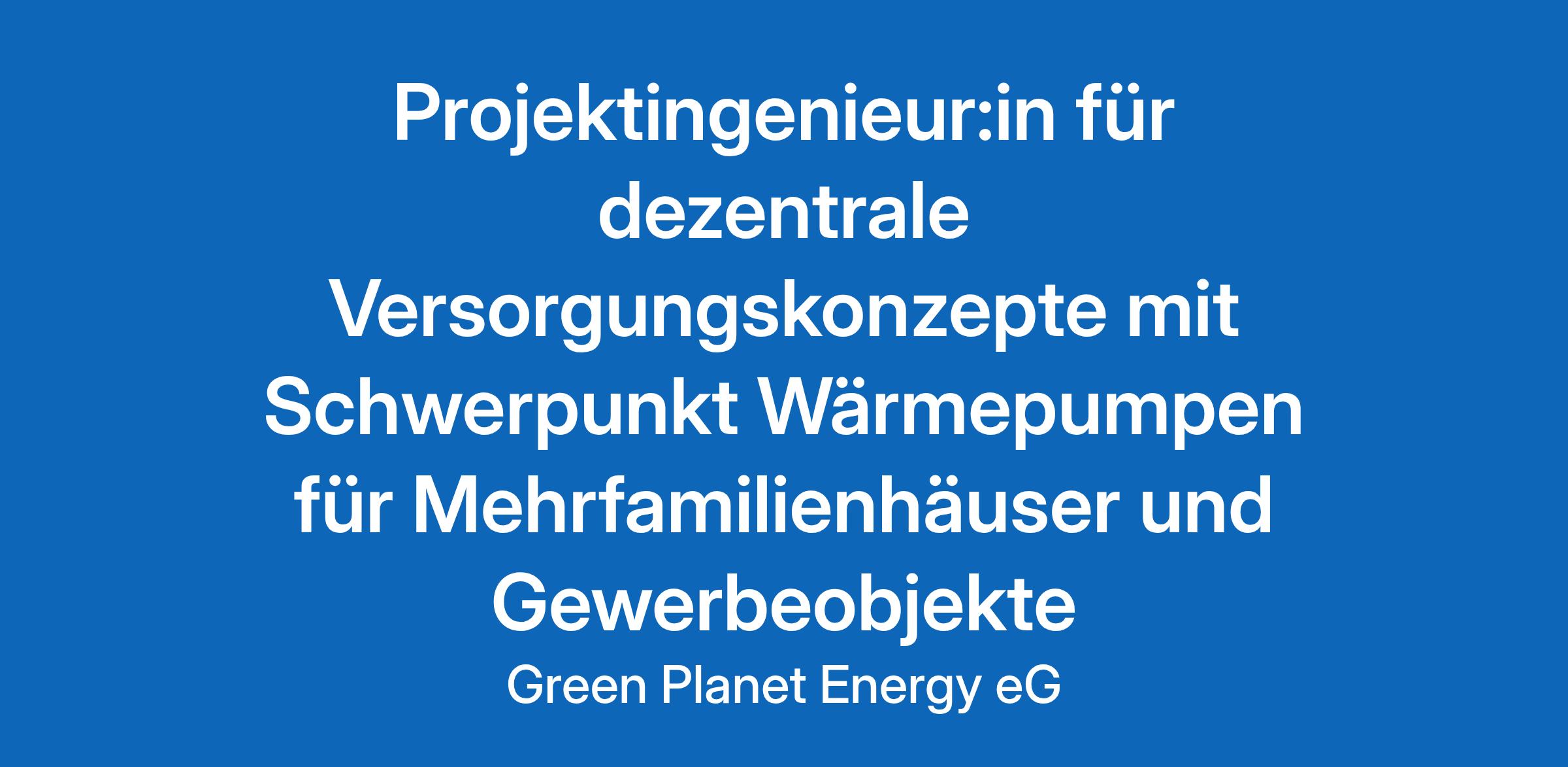 Green Planet Energy versteht sich als Lotse der Energiewende. Entstanden aus einer Kampagne der Umweltschutzorganisation Greenpeace e.V., engagieren wir uns aus tiefster Überzeugung für eine Energieversorgung aus umweltfreundlichen Quellen – ohne Kohle und Atom. Authentisch, politisch engagiert u... Projektingenieur, Projektingenieurin, Erneuerbare Energien, Wärmepumpe Energiewende;Klimaschutz;Sicherung;Arbeitsplanung;Unternehmensbereich;Wärmepumpe;Mehrfamilienhaus;Verhandlungsführung;Energie;Prozessentwicklung;Projektkalkulation;Technikaffin;Innovation;Wärme;Mieterstrom;Leistungsfähigkeit;Projektmanagement;Energieversorgung;Strom;Genossenschaften;Planet;Projektmanagement;Planung;Interne Prozesse;Beratung Original Stellenanzeige auf StepStone.de – Jetzt Jobagent bei StepStone einrichten und Traumjob finden! https://bit.ly/2KOagYD Mehr Informationen zu Arbeitgebern, Gehaltsdaten und Karrieretipps finden Sie auf StepStone.de