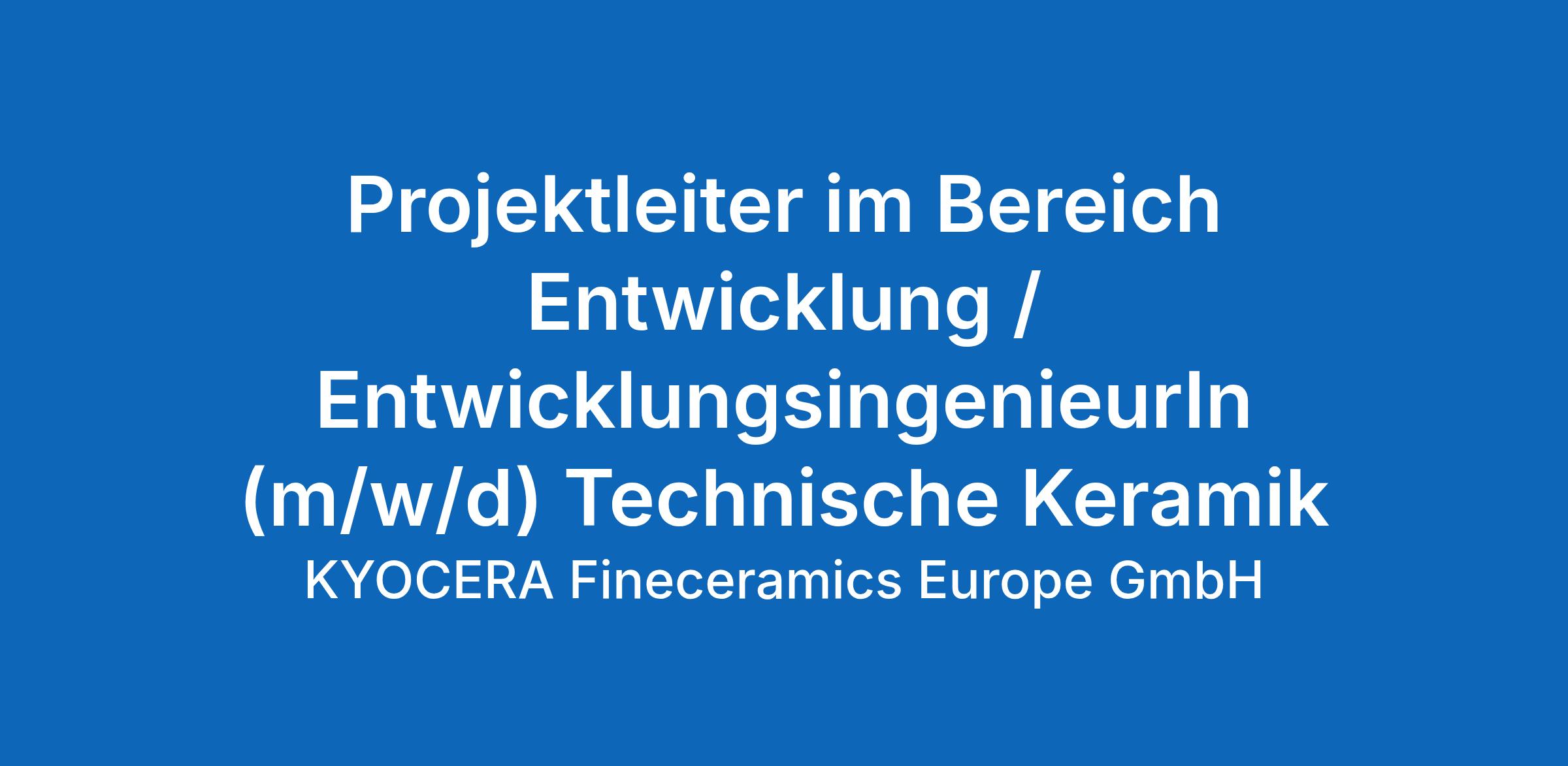 Projektleiter im Bereich Entwicklung / EntwicklungsingenieurIn (m/w/d) – Technische Keramik