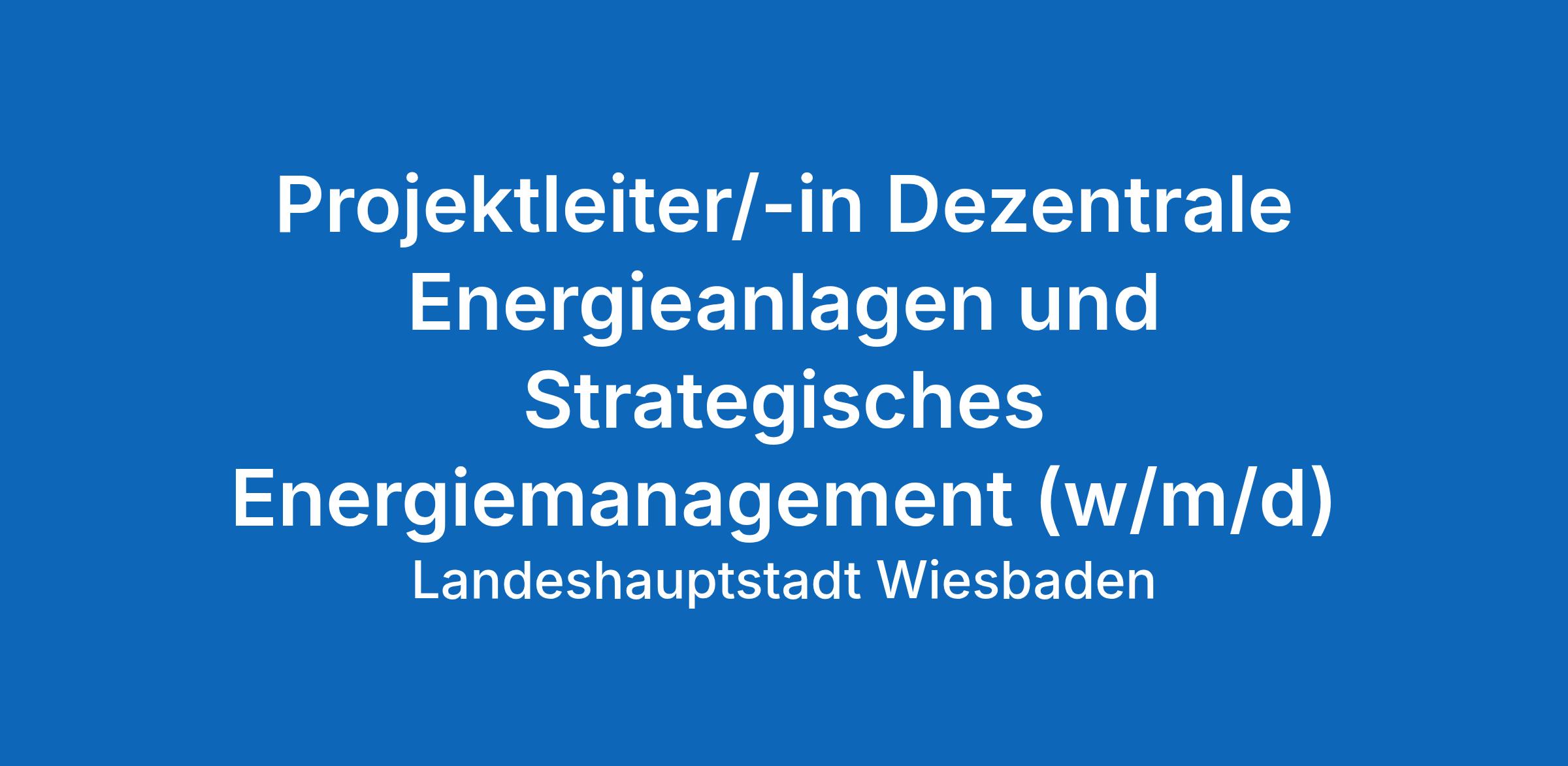 Projektleiter/-in Dezentrale Energieanlagen und Strategisches Energiemanagement (w/m/d)