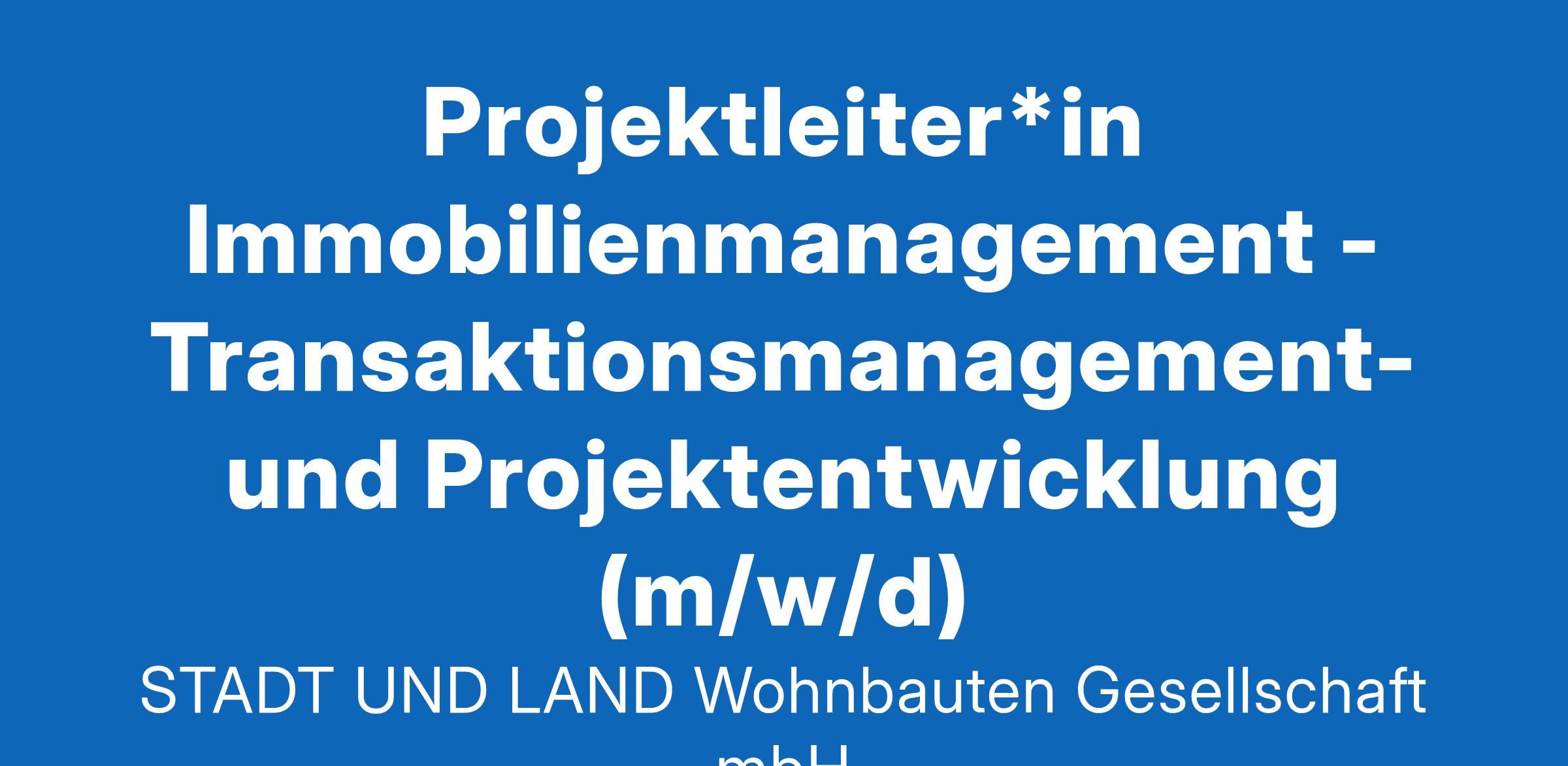 Projektleiter*in Immobilienmanagement - Transaktionsmanagement- und Projektentwicklung (m/w/d) Über uns – Wir sind die STADT UND LAND Die STADT UND LAND Wohnbauten-Gesellschaft mbH bewirtschaftet rund 52.300 Wohnungen im eigenen Bestand, mehr als 11.000 weitere Wohnungen im Auftrag Dritter sowie über 870 eigene Gewerbeobjekte und über 260 Gewerbeobjekte im Auftrag Dritter in den Bezirken Neukölln, Treptow-Köpenick, Tempelhof-Schöneberg, Marzahn-Hellersdorf; Steglitz-Zehlendorf und Charlottenburg-Wilmersdorf sowie in Neuenhagen und Fredersdorf und zählt zu den großen städtischen Wohnungsbaugesellschaften Berlins. Der Bestand soll bis 2033 durch Neubau und Ankauf auf insgesamt mehr als 56.250 Wohnungen wachsen. Dafür möchte das Unternehmen rund 940 Mio. Euro investieren. Kontinuierlich investiert die STADT UND LAND auch in die Sanierung und Modernisierung ihrer Bestände und unterstützt zahlreiche soziale Projekte und Initiativen zur Stärkung der Quartiere. Sie möchten auch einen Beitrag für ein lebenswertes Berlin leisten? Dann kommen Sie zur STADT UND LAND! Im Bereich Finanz- und Grundstückswesen besetzen wir an unserem Hauptsitz Berlin-Neukölln zum nächstmöglichen Zeitpunkt und unbefristet eine*n: Projektleiter*in Transaktionsmanagement- und Projektentwicklung (m/w/d) Als Projektleiter*in in unserem Team verantworten Sie wesentliche Prozesse in der Grundstücks- und Projektentwicklung sowie im Transaktionsmanagement. Ihre Aufgaben: Grundstücksentwicklung : Schaffung der Baureife, Entwicklung von Bauland und Gestaltung von Baurechtsprozessen (öffentliches Baurecht, Planungsrecht). Transaktionsmanagement : Leitung und Koordination von An- und Verkaufsprozessen, einschließlich Angebotserstprüfung, Due Diligence, Vertragsverhandlungen und baubegleitender Projektleitung. Neubauprojekte voranbringen : Übernahme der Projektleitung bei Bauträger- und Neubauvorhaben. Portfoliomanagement : strategische Portfolioanalyse, Marktbeobachtung, Identifikation von Investitionschancen und Umsetzung strategischer Ziele. Investitionsrechnung : Erstellung von Wirtschaftlichkeitsberechnungen, Verkehrswertprüfung, Aktualisierung der Immobilienwerte. Beratung und Abstimmung : Zusammenarbeit mit Behörden, Koordination interner und externer Partner sowie Erstellung von Entscheidungsvorlagen. Ihr Profil: Expertise : Studienabschluss in Immobilienökonomie, Wirtschaftswissenschaften / BWL oder ein vergleichbarer Abschluss mit relevanter Berufserfahrung im Transaktions- und Projektmanagement, vorzugsweise im Bereich Wohnimmobilien. Kenntnisse : Fundiertes Wissen im Immobilienmarkt, der Grundstücks- und Wohnungswirtschaft sowie in rechtlichen Rahmenbedingungen. Kompetenzen : Erfahrung in Vertragsverhandlungen, Projektleitung und der Entwicklung von Investitionsrechnungen. Kenntnisse in MS Office setzen wir voraus, Kenntnisse in SAP sind von Vorteil. Netzwerk : Ausgeprägtes System von Kontakten zu relevanten Akteuren auf dem Berliner Immobilienmarkt (Makler, Projektentwickler, Investoren, Architekten, usw.) Persönlichkeit : Verhandlungsgeschick, Eigeninitiative, präzise Arbeitsweise, Teamgeist und ein überzeugendes Auftreten. Englischkenntnisse sind von Vorteil. Unser Angebot – Ihre Zukunft bei STADT UND LAND: Wir engagieren uns für BERLIN : Sie übernehmen eine sinnstiftende Tätigkeit in einer wichtigen Aufgabe für das Unternehmen und das Land Berlin. Wir unterstützen EIGENVERANTWORTUNG : Wir bieten Ihnen eine spannende und verantwortungsvolle Position mit vielfältigem Gestaltungsspielraum. Wir sind FAIR : Wir bieten Ihnen eine unbefristete Anstellung, Vergütung nach Tarifvertrag der Wohnungswirtschaft sowie eine attraktive betriebliche Altersvorsorge. Die Gehaltsspanne für das Jahresbruttogehalt inklusive Weihnachts- und Urlaubsgeldes liegt zwischen 60.000 € und 69.000 €, je nach Berufserfahrung. Wir sind FLEXIBEL : Eine sehr gute Work-Life-Balance durch flexible Arbeitszeiten (Gleitzeit ohne Kernzeit) bei einer 37-Stunden-Woche, 30 Urlaubstage (zzgl. Heiligabend und Silvester arbeitsfrei) sowie die Möglichkeit zum mobilen Arbeiten sind bei uns selbstverständlich. Wir sind UMWELTBEWUSST : Wir übernehmen nahezu vollständig die Kosten für das Deutschlandticket (ÖPNV) oder 80 % der Kosten für die VBB-Umweltkarte (Tarifgebiet AB). Wir bieten eine hervorragende AUSSTATTUNG : Modern eingerichtete Büros mit ergonomischen Arbeitsplätzen, Firmen-Tablet und -Smartphone sowie kostenlose Getränke (Wasser, Kaffee, Tee). Wir fördern Ihre GESUNDHEIT : Wir bieten Ihnen ein umfangreiches betriebliches Gesundheitsmanagement mit vielfältigen Angeboten. Hierzu zählen u. a. Yoga-Kurse, Vorteilspreise auf Fitnessstudio-Mitgliedschaften sowie Seminare und Workshops zum Thema Stressprävention. Wir fördern LEBENSLANGES LERNEN : Wir unterstützen Sie durch ein umfassendes Onboarding sowie Ihre fachliche und persönliche Weiterentwicklung durch gezielte Weiterbildungen, damit Sie für sich und die STADT UND LAND optimal wirksam werden. Sie sind interessiert? Wir freuen uns auf Sie! Bitte bewerben Sie sich über unser Online-Bewerbungsformular. Wir freuen uns auf Ihre Bewerbung! Fragen beantwortet Ihnen Cissy Bretsch , Bereich Personal, unter der Telefonnummer 030 6892-6287 . Inklusion und Offenheit sind bei der STADT UND LAND selbstverständlich. Bei uns ist jede Bewerbung willkommen – unabhängig von Geschlecht, Alter, sexueller Identität, Religion oder Weltanschauung, Behinderung sowie der kulturellen und sozialen Herkunft. Bitte beachten Sie unsere Datenschutzinformationen . ____________________________ STADT UND LAND Wohnbauten-Gesellschaft mbH Werbellinstraße 12 | 12053 Berlin www.stadtundland.de
