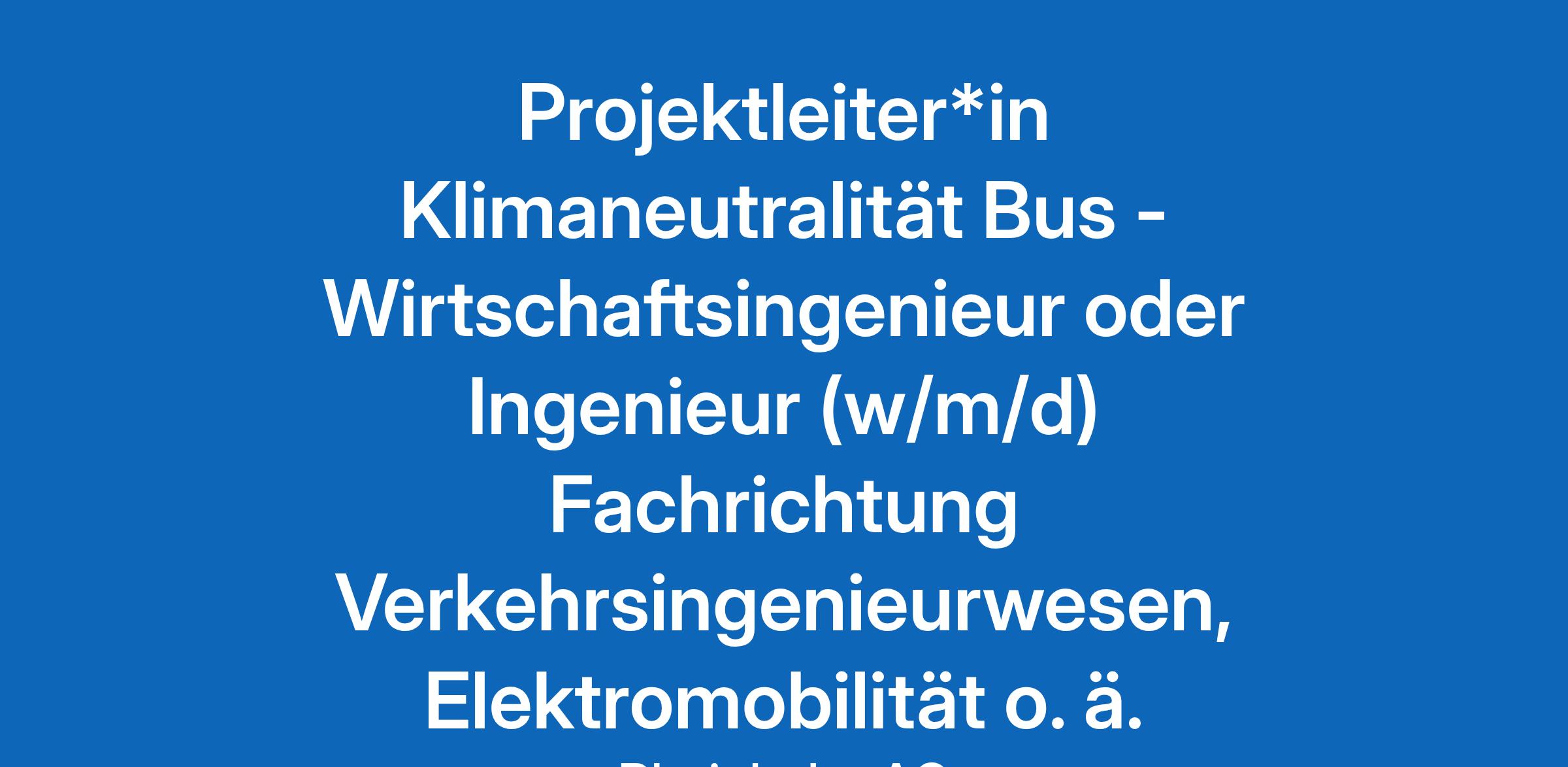 Projektleiter*in Klimaneutralität Bus - Wirtschaftsingenieur oder Ingenieur (w/m/d) Fachrichtung Verkehrsingenieurwesen, Elektromobilität o. ä.