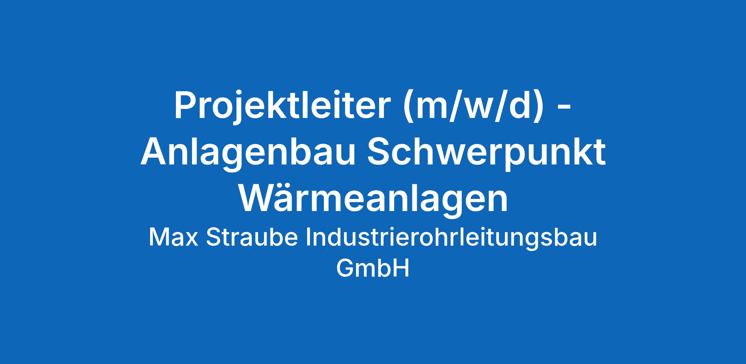 Sie brennen für anspruchsvolle Projekte im Anlagenbau und möchten in einem Umfeld arbeiten, in dem Wärme nicht nur Produkt, sondern gelebter Markenkern ist? Dann werden Sie Teil der Max Straube Industrierohrleitungsbau GmbH – einem traditionsreichen Unternehmen, das Sicherheit, Weiterentwicklung und echte Teamkultur verbindet. Gemeinsam gestalten wir moderne Wärmeanlagen und nachhaltige Lösungen für die Industrie.