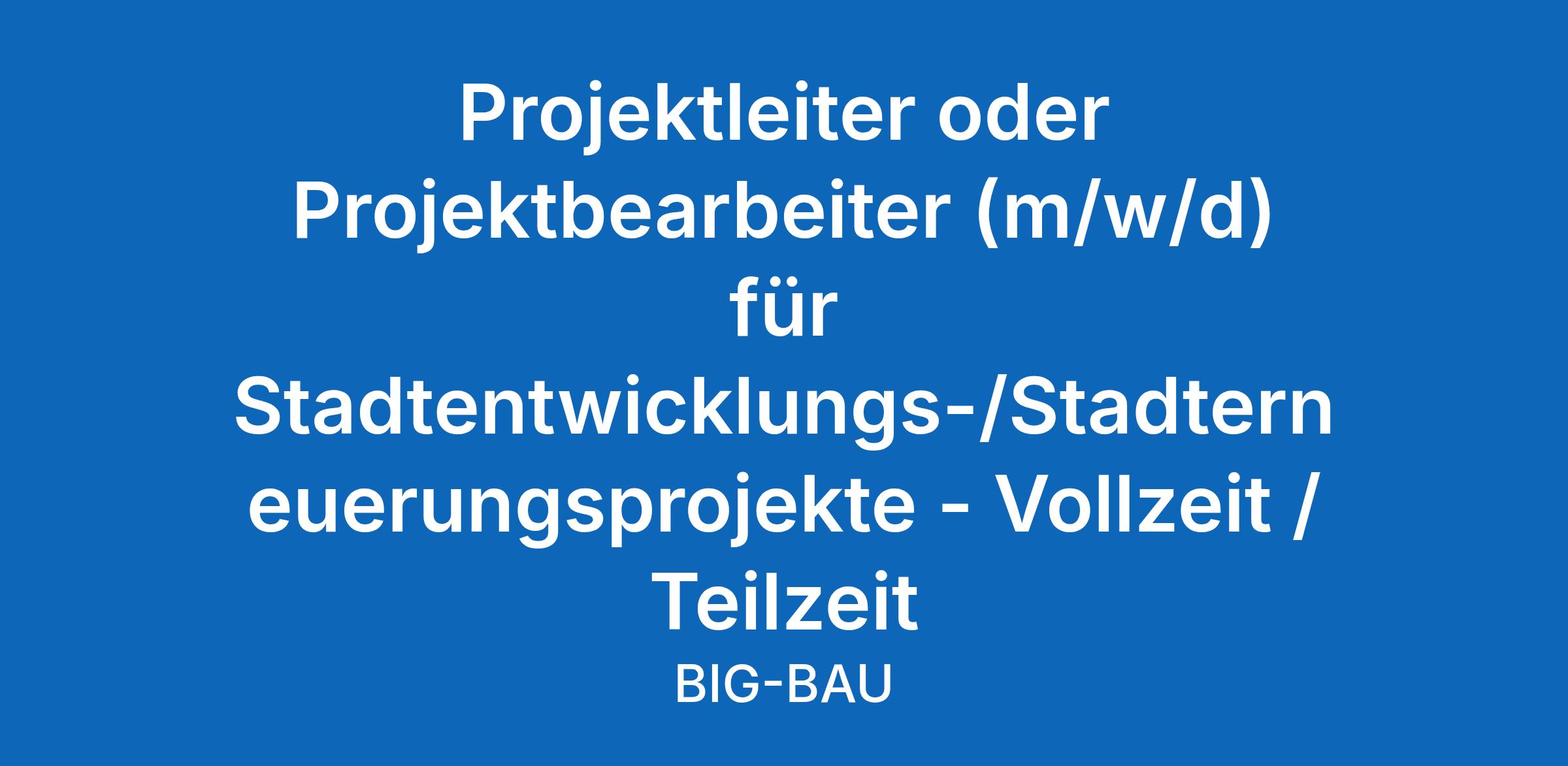 Projektleiter oder Projektbearbeiter (m/w/d) für Stadtentwicklungs-/Stadterneuerungsprojekte Vollzeit/Teilzeit, mind. 25 Wochenstunden