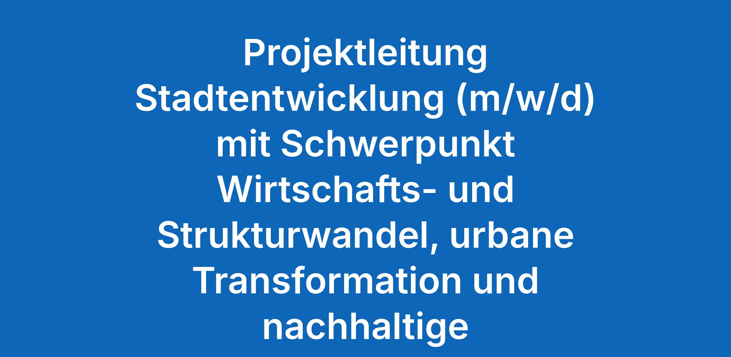 Projektleitung Stadtentwicklung (m/w/d) mit Schwerpunkt Wirtschafts- und Strukturwandel, urbane Transformation und nachhaltige Stadtentwicklung