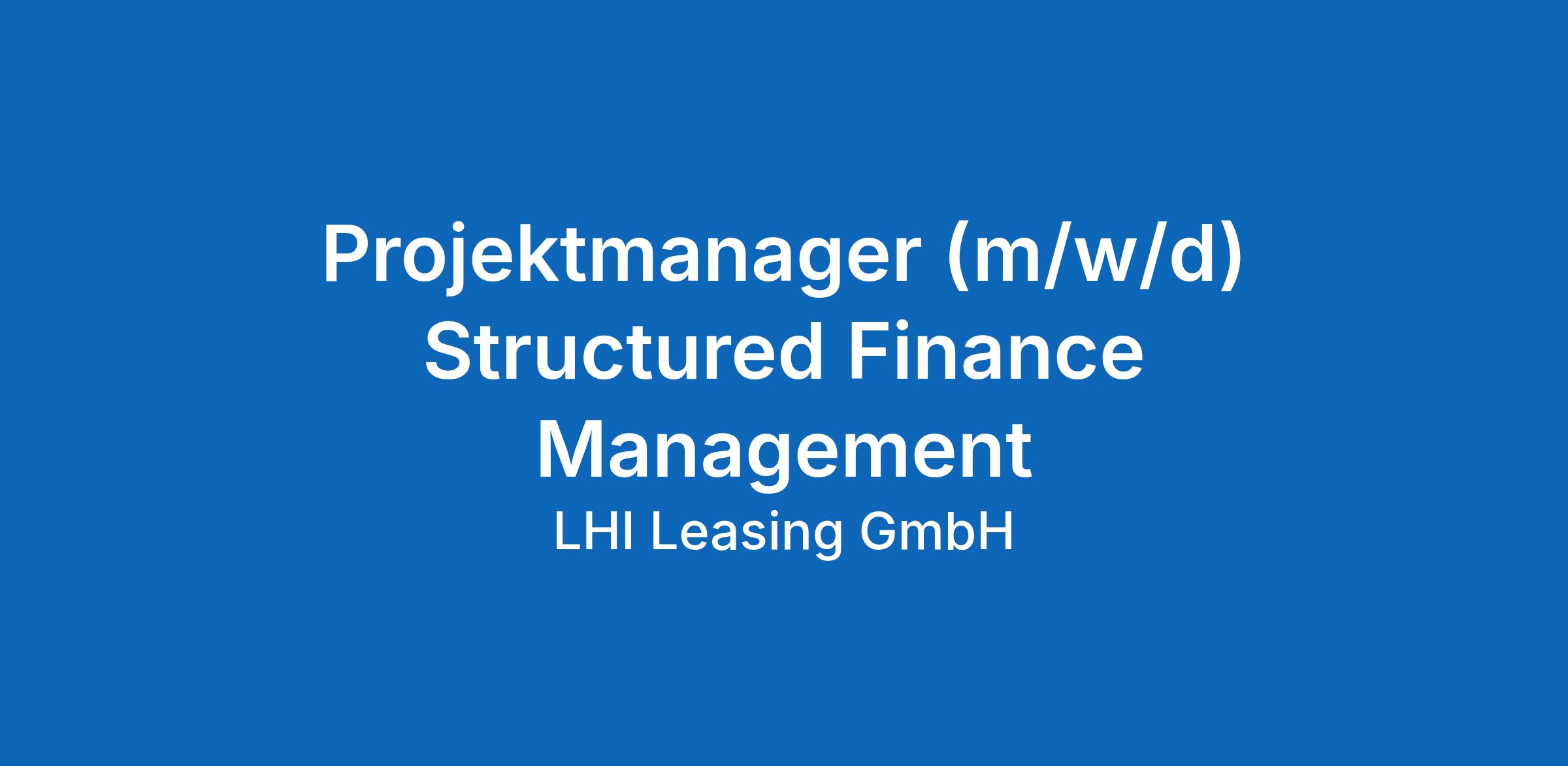 Projektmanager (m/w/d) Structured Finance Management
