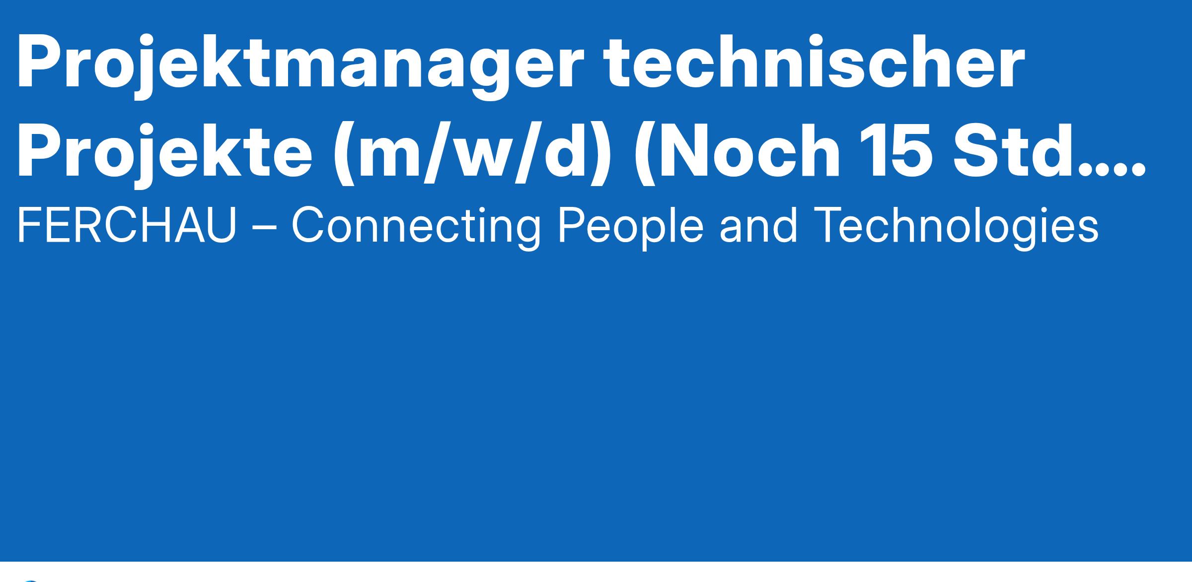 Projektmanager technischer Projekte (m/w/d) (Noch 15 Std. zum Bewerben!)