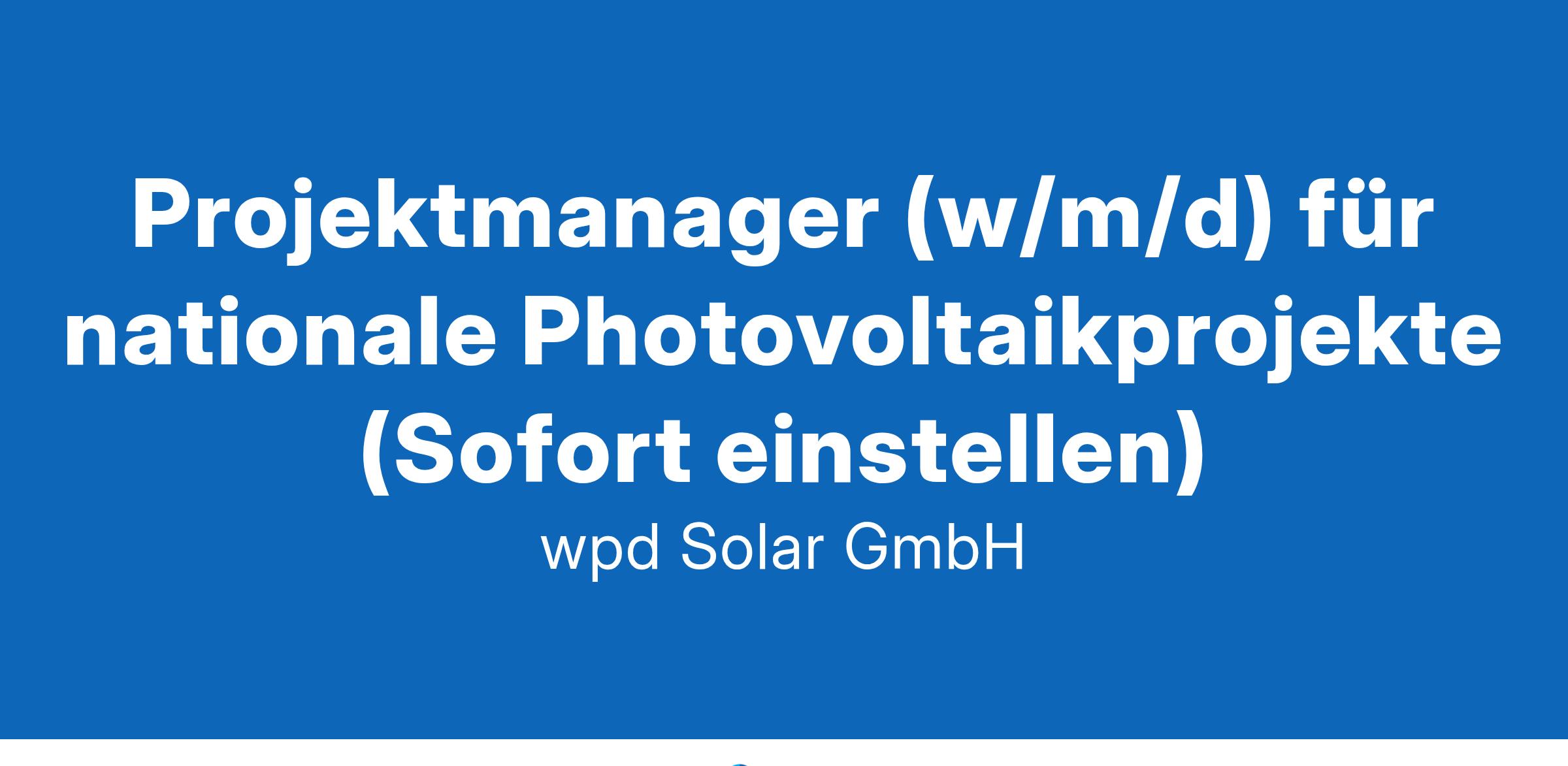 Projektmanager (w/m/d) für nationale Photovoltaikprojekte (Sofort einstellen)