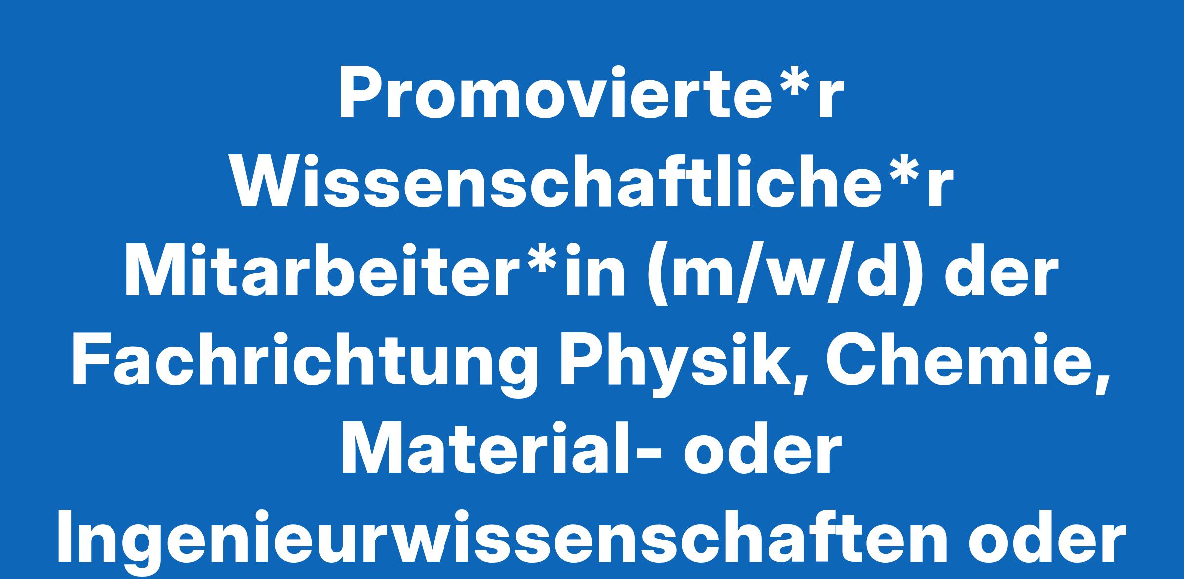 Promovierte*r Wissenschaftliche*r Mitarbeiter*in (m/w/d) der Fachrichtung Physik, Chemie, Material- oder Ingenieurwissenschaften oder vergleichbare Fachrichtung