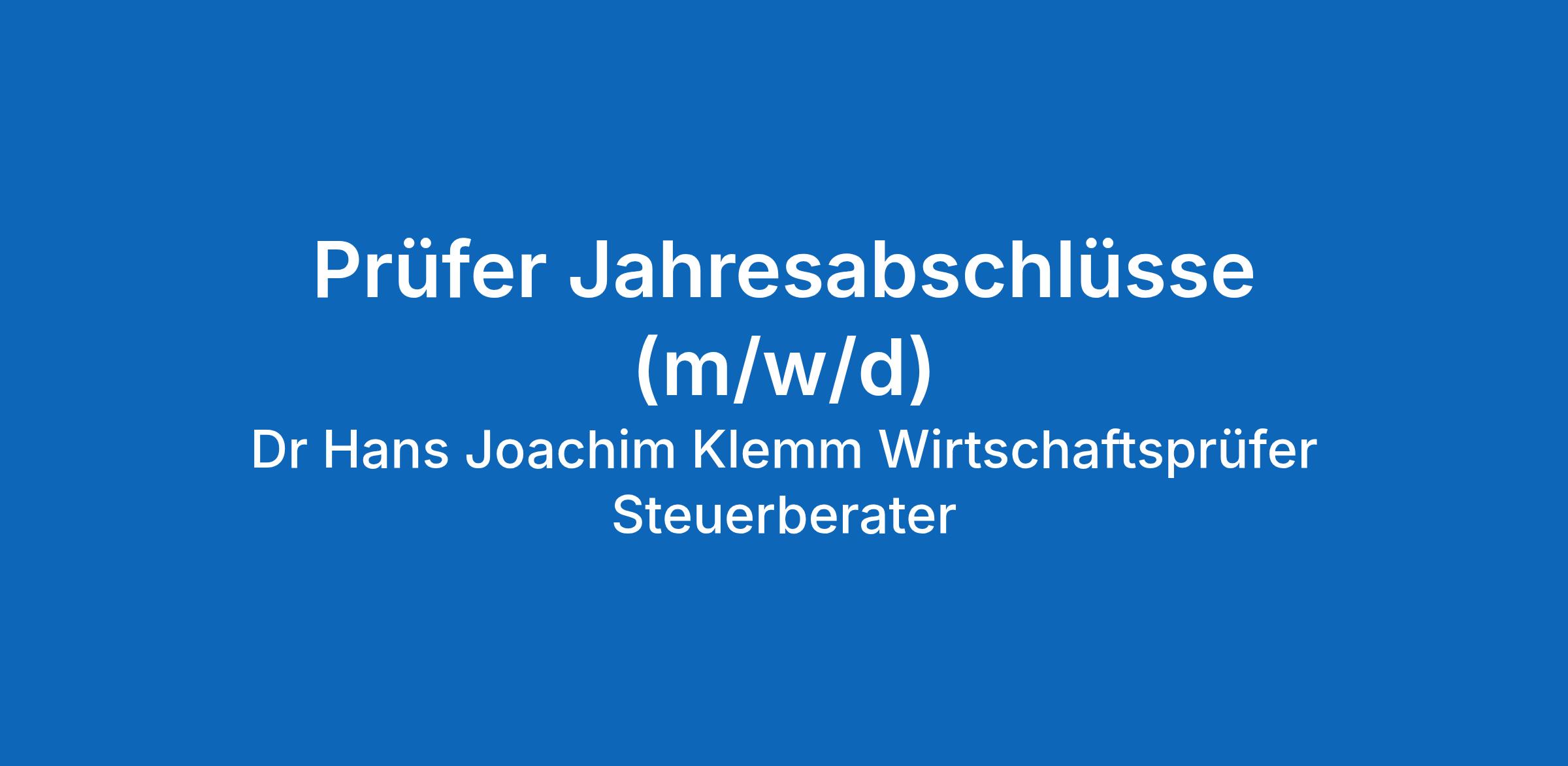 Dr Hans Joachim Klemm Wirtschaftsprüfer Steuerberater