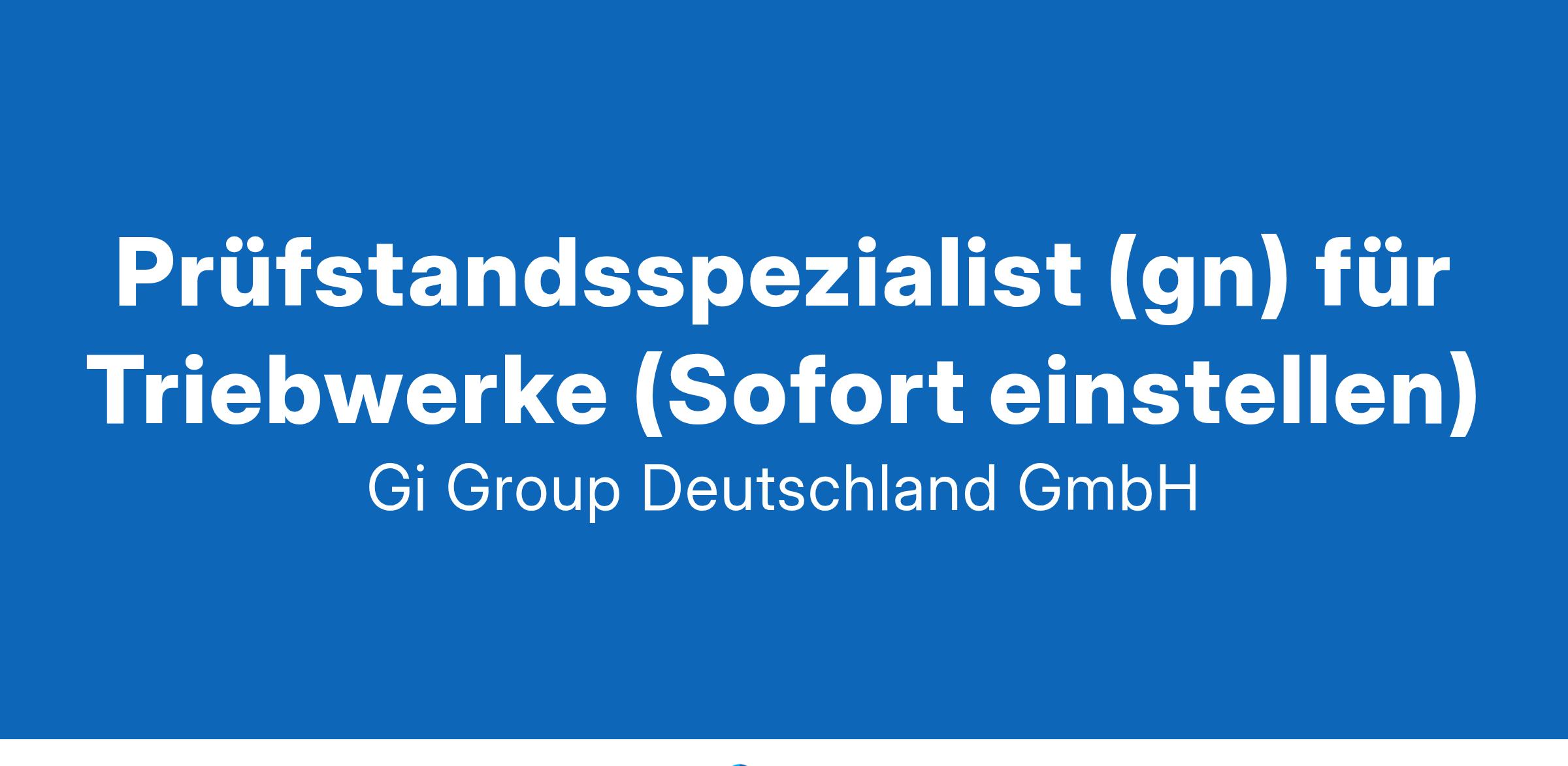 Facharbeiter Prüfstand (gn) Triebwerksbereich ab sofort in Vollzeit in Frankfurt am Main in Direktvermittlung Die Gi Group ist ein international agierender Personaldienstleister mit mehr als 500 Standorten in 40 Ländern. Unser Kunde ist ein renommiertes und zukunftsorientiertes Unternehmen aus der Luftfahrt.  Deine Aufgaben Aufrüsten und Abrüsten von verschiedenen Triebwerkmustern für das Durchführen von Prüfläufen  Vorbereitung von Triebwerksprüfläufen  Durchführung von Triebwerksprüfläufen  Fehleranalyse und Behebung  Wartungsarbeiten am Triebwerk  Wartungsarbeiten am Prüfstandequipment  Dein Profil als Facharbeiter Prüfstand Eine abgeschlossene Berufsausbildung in einem metallverarbeitenden Bereich, z.B. KFZ-Mechaniker, Anlagenmechaniker, Industriemechaniker zzgl. Bereitschaft zum Erwerb der Qualifikation zum Engine Mechanic Gerne alternativ ein abgeschlossene Berufsausbildung in einem luftfahrttechnischen Bereich, z.B. Fluggerätmechaniker Fachrichtung Triebwerkstechnik  Fortgeschrittene Englischkenntnisse Bereitschaft zum Schichtdienst (verschiedene Schichtmodelle mit Zulagen) Bereitschaft zu mehrtägigen Dienstreisen bzw. Auslandseinsätzen Das bietet der Kunde Urlaubs- und Weihnachtsgeld sowie eine Gewinnbeteiligung, 30 Tage Urlaub  Flugvergünstigungen, Einkaufsrabatte in Geschäften und Jobrad-Leasing  Kostenloses Parken, betriebliche Altersvorsorge und Verpflegungszuschuss für die Kantine  Fitness- und Sportangebote, Jobticket/Zuschuss ÖPNV Und vieles mehr  Deine Bewerbung Für Deine Bewerbung als Facharbeiter Prüfstand Triebwerksbereich klicke bitte einfach auf „Jetzt bewerben“. Dort kannst Du Deine Kontaktdaten eingeben sowie Deinen Lebenslauf und Deine Bewerbungsunterlagen hochladen. Du benötigst dafür nur ca. 1 Minute. Dein zuständiger Personaldisponent wird sich bei Dir schnellstmöglich melden. Gerne kannst Du uns auch Deine Bewerbungsunterlagen per E-Mail zusenden. Wir freuen uns auf Deine Bewerbung als Facharbeiter Prüfstand! Unsere Stellenangebote richten sich an Arbeitssuchende jeglichen Geschlechts. (gn) = geschlechtsneutral. Kontakt Gi Group Recruiting Team