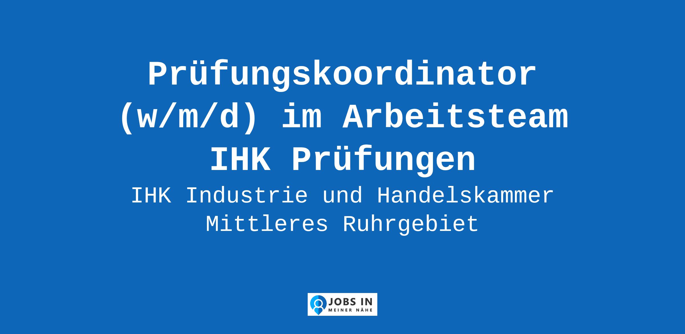 Die Industrie- und Handelskammer Mittleres Ruhrgebiet (IHK) vertritt die Interessen von mehr als 37.500 Unternehmen aus den Bereichen Industrie, Handel und Dienstleistungen in den Städten Bochum, Hattingen, Herne und Witten. Gemeinsam mit unseren Mitgliedsunternehmen entwickeln wir Strategien und... EDV;Planung;Schulung;Ergebnisorientiert;Lernbereitschaft;Koordination;Abschlussprüfung;Prüfungsdaten Original Stellenanzeige auf StepStone.de – Jetzt Jobagent bei StepStone einrichten und Traumjob finden! https://bit.ly/2KOagYD Mehr Informationen zu Arbeitgebern, Gehaltsdaten und Karrieretipps finden Sie auf StepStone.de