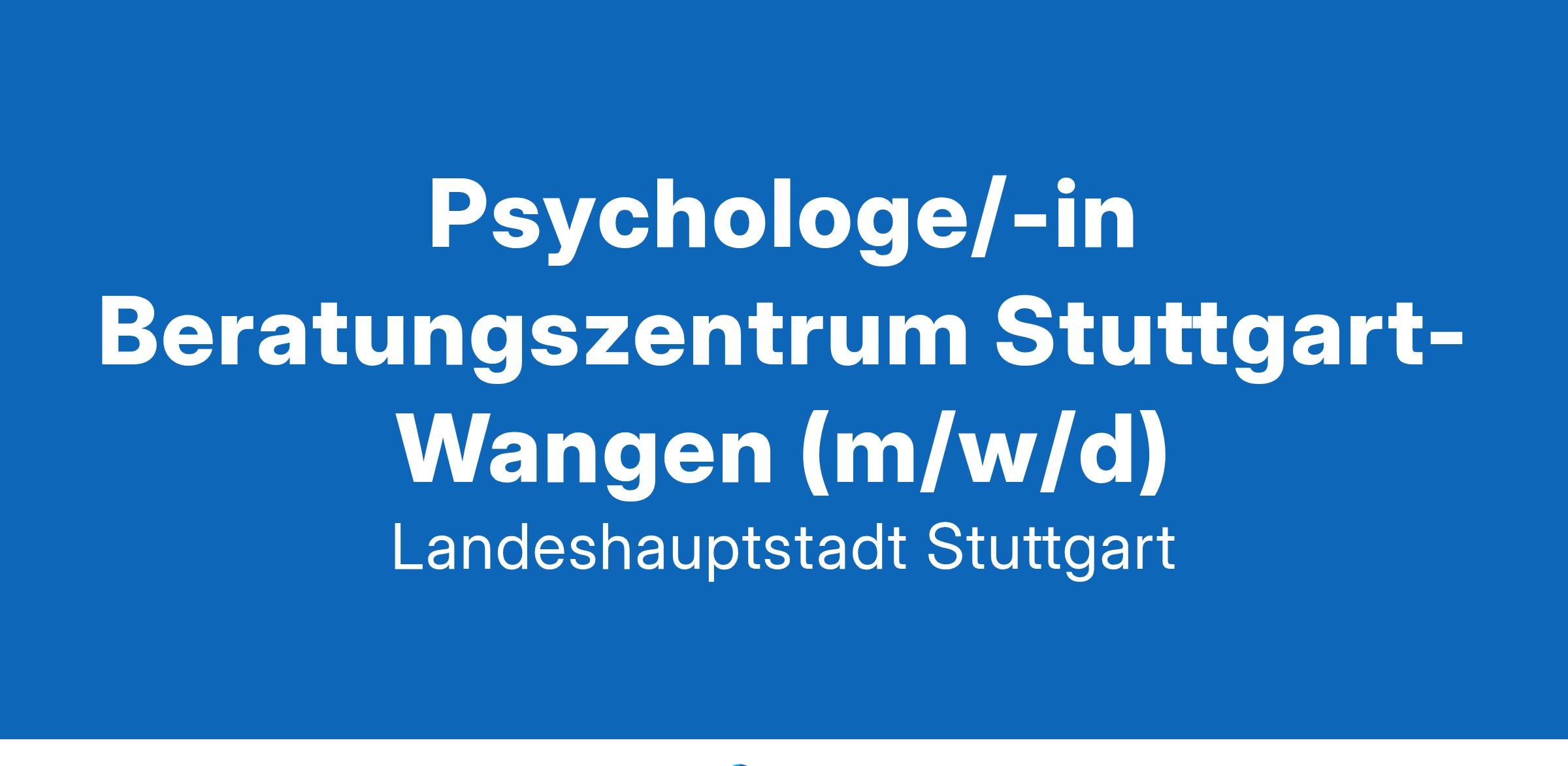 Psychologe/-in Beratungszentrum Stuttgart-Wangen (m/w/d)Wir suchen Sie für das Jugendamt der Landeshauptstadt Stuttgart. Die Stelle ist in Teilzeit (50 %) zu besetzen.