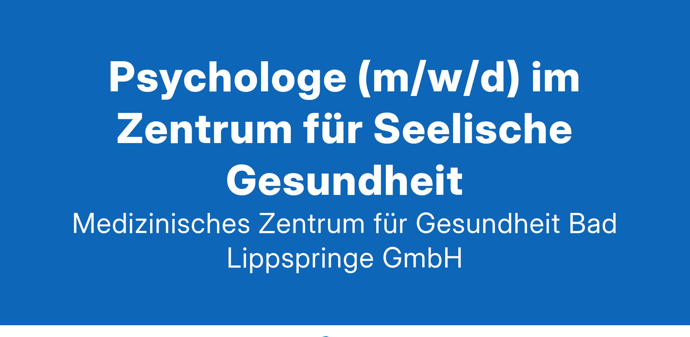 Psychologe (m/w/d) im Zentrum für Seelische GesundheitZum Zentrum für Seelische Gesundheit (ZSG) in Bad Lippspringe gehört die akut-psychiatrische Klinik für Seelische Gesundheit (KSG) sowie die Klinik am Park (KAP), eine Rehabilitationsklinik für Psychosomatik und Entwöhnungsbehandlung. Die Klinik für Seelische Gesundheit (KSG) hat einen Voll- und Pflichtversorgungsauftrag. Sie besteht aus Institutsambulanz, Tagesklinik (12 Plätze) und stationärem Bereich (40 Betten, im Aufbau).Gesucht wird zum nächstmöglichen Zeitpunkt in Vollzeit ein Psychologe (m/w/d) im Zentrum für Seelische Gesundheit.Ihre AufgabenPatientenbehandlung (Einzel- und Gruppentherapien), incl. Visiten