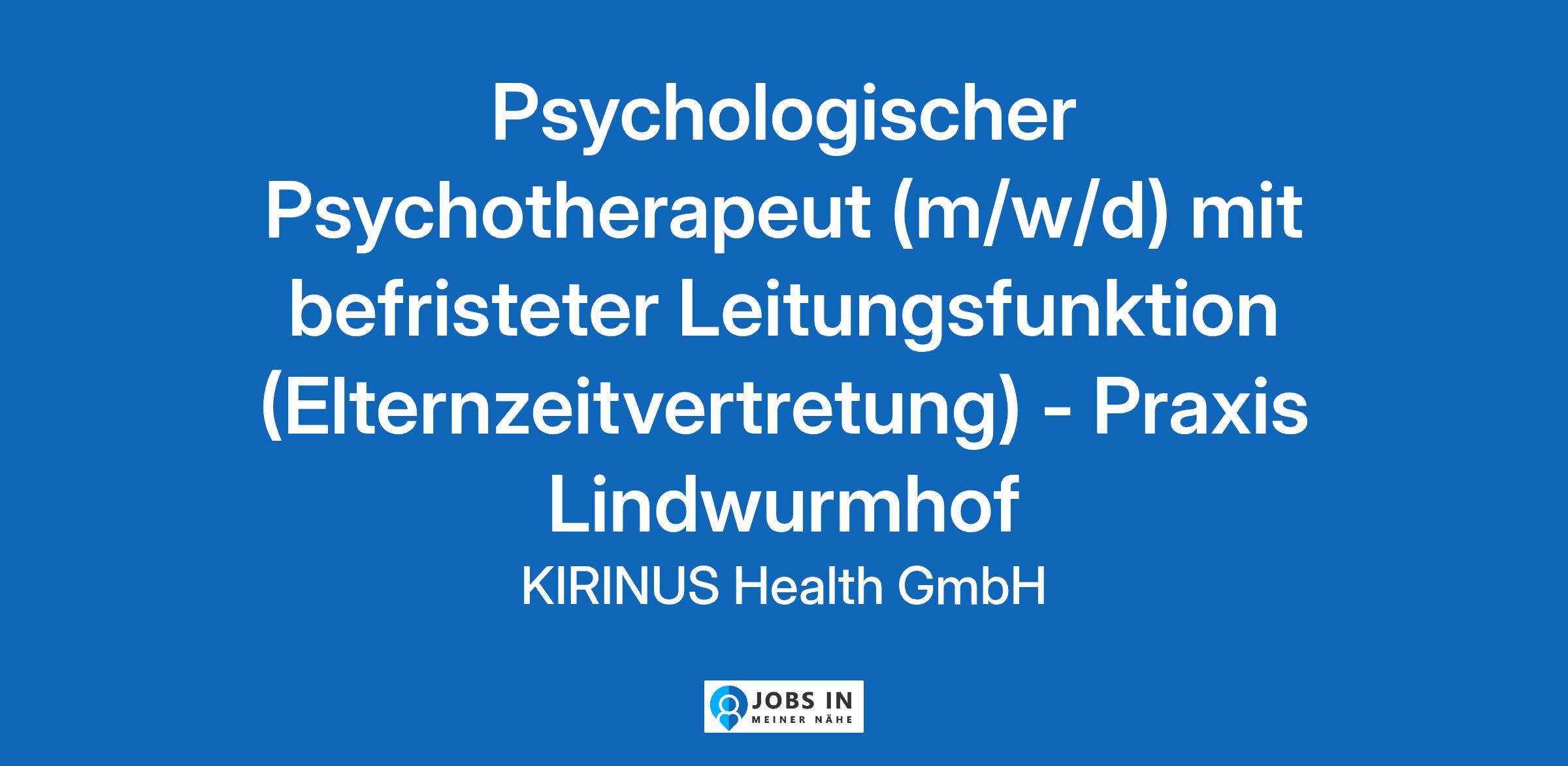 Psychologischer Psychotherapeut (m/w/d) mit befristeter Leitungsfunktion (Elternzeitvertretung) - Praxis Lindwurmhof