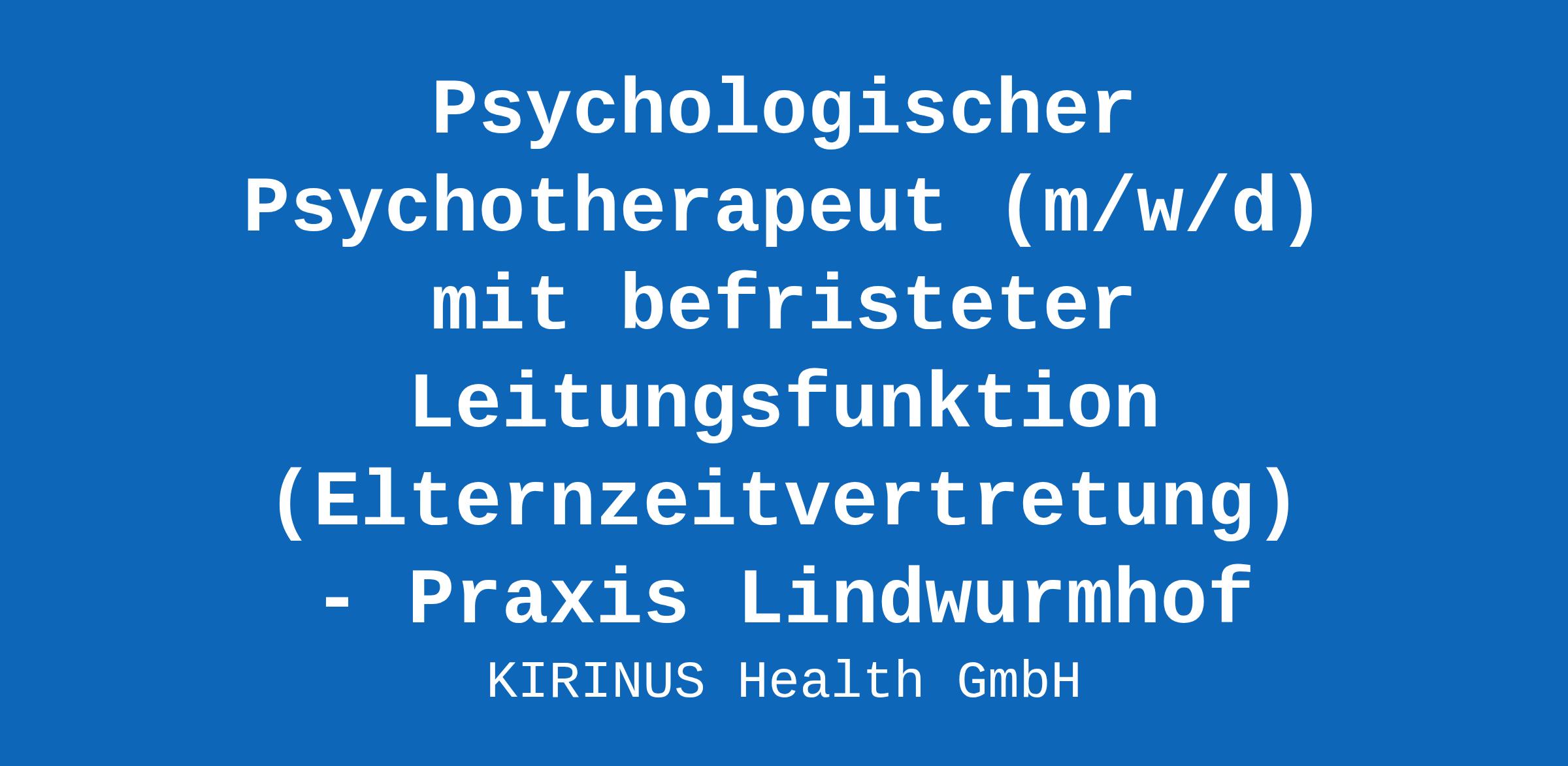 Psychologischer Psychotherapeut (m/w/d) mit befristeter Leitungsfunktion (Elternzeitvertretung) - Praxis Lindwurmhof