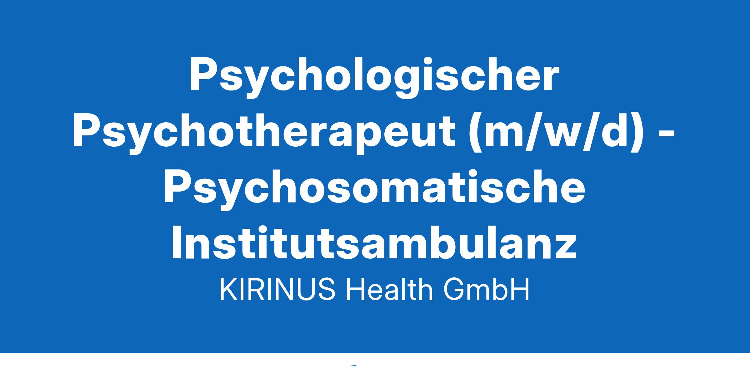 Psychologischer Psychotherapeut (m/w/d) - Psychosomatische InstitutsambulanzKIRINUS HealthMünchen, KIRINUS Tagesklinik SchwabingVoll/TeilzeitPubliziert: 12.11.2024Eine Gruppe. Unendliche Möglichkeiten. Wir sind KIRINUS - Eine familiengeführte Gesundheitsgruppe in der dritten Generation mit einer breiten Expertise und einer gemeinsamen Vision: Das Beste im Menschen sehen und entfalten. Wir bieten eng-verzahnte Angebote in den Bereichen Allgemeinmedizin, Orthopädie und Psychosomatik. Mit rund 900 Mitarbeitenden denken wir Gesundheit weiter, nehmen uns Zeit und gehen individuell auf die Bedürfnisse unserer Patientinnen, Partner, Mitarbeiterinnen und Ausbildungskandidaten ein.