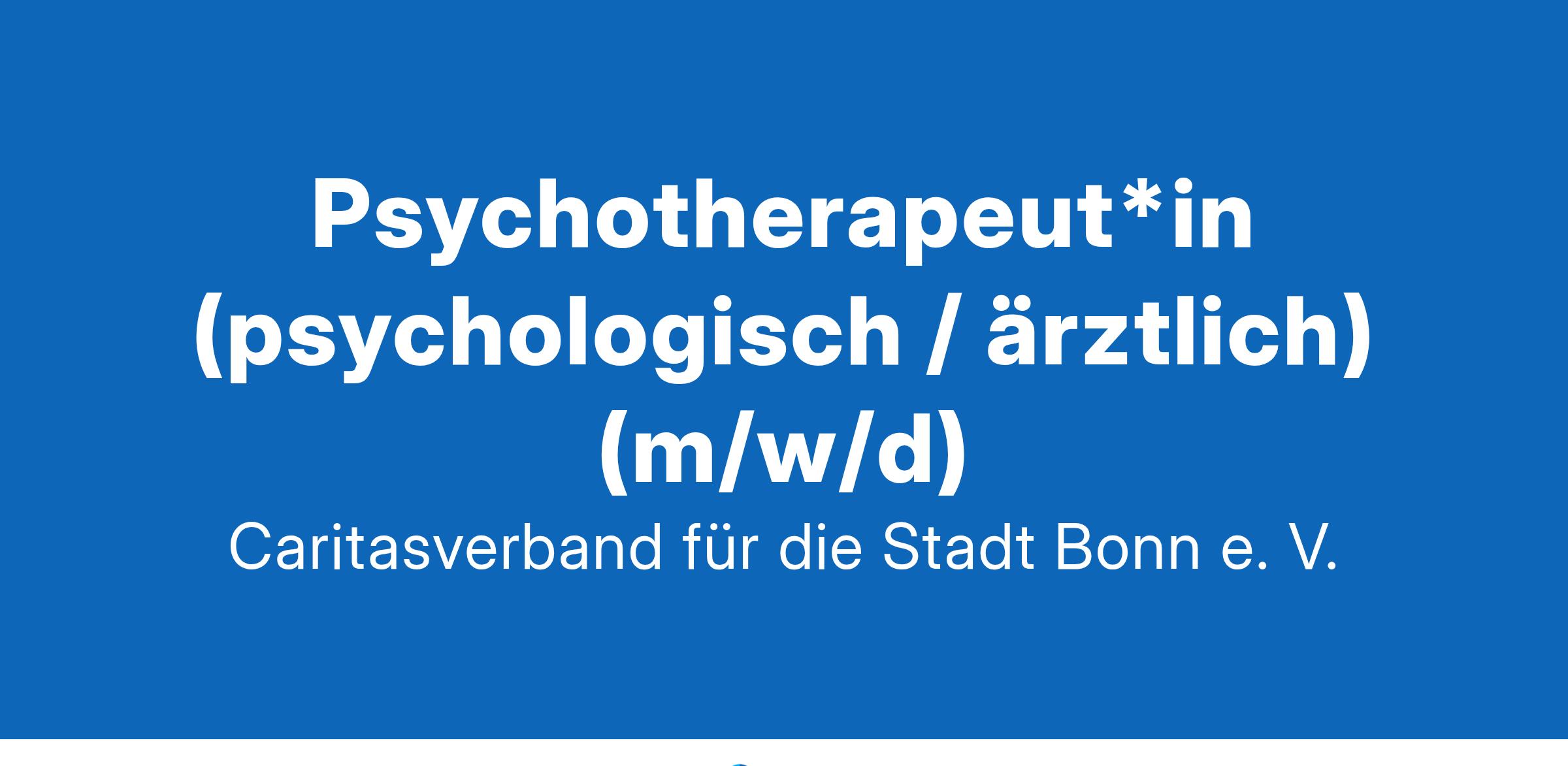 Fachdienstes für Integration und Migration "Haus Mondial"suchen wir zur Therapie von Geflüchteten ab sofort eine*nPsychotherapeut*in (psychologisch / ärztlich) (m/w/d)mit einem Beschäftigungsumfang von 19,5 - 39 Std. / Woche. Die Stelle ist zunächst auf ein Jahr befristet, mit Aussicht auf Verlängerung.