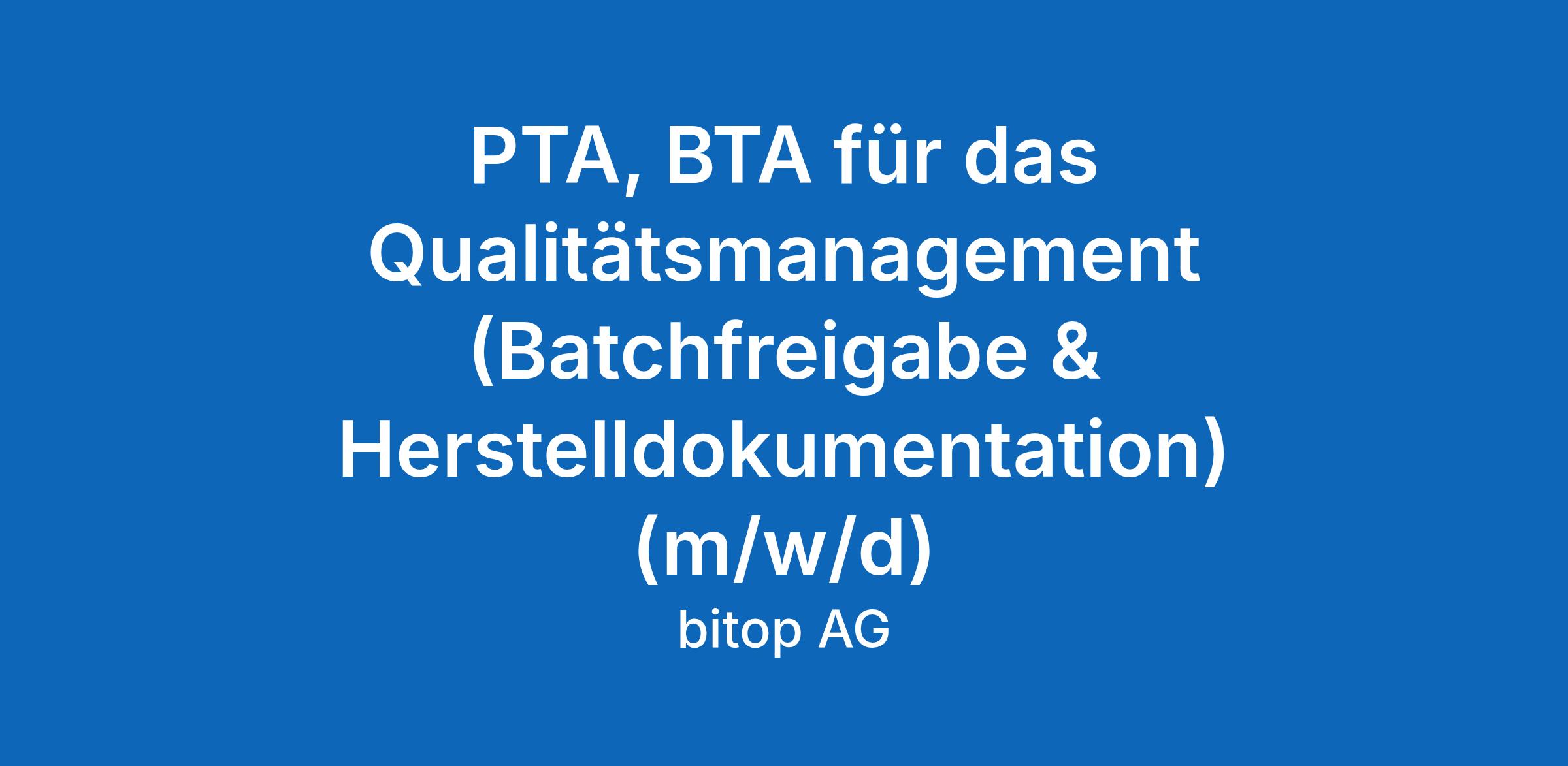 PTA, BTA für das Qualitätsmanagement (Batchfreigabe & Herstelldokumentation) (m/w/d)