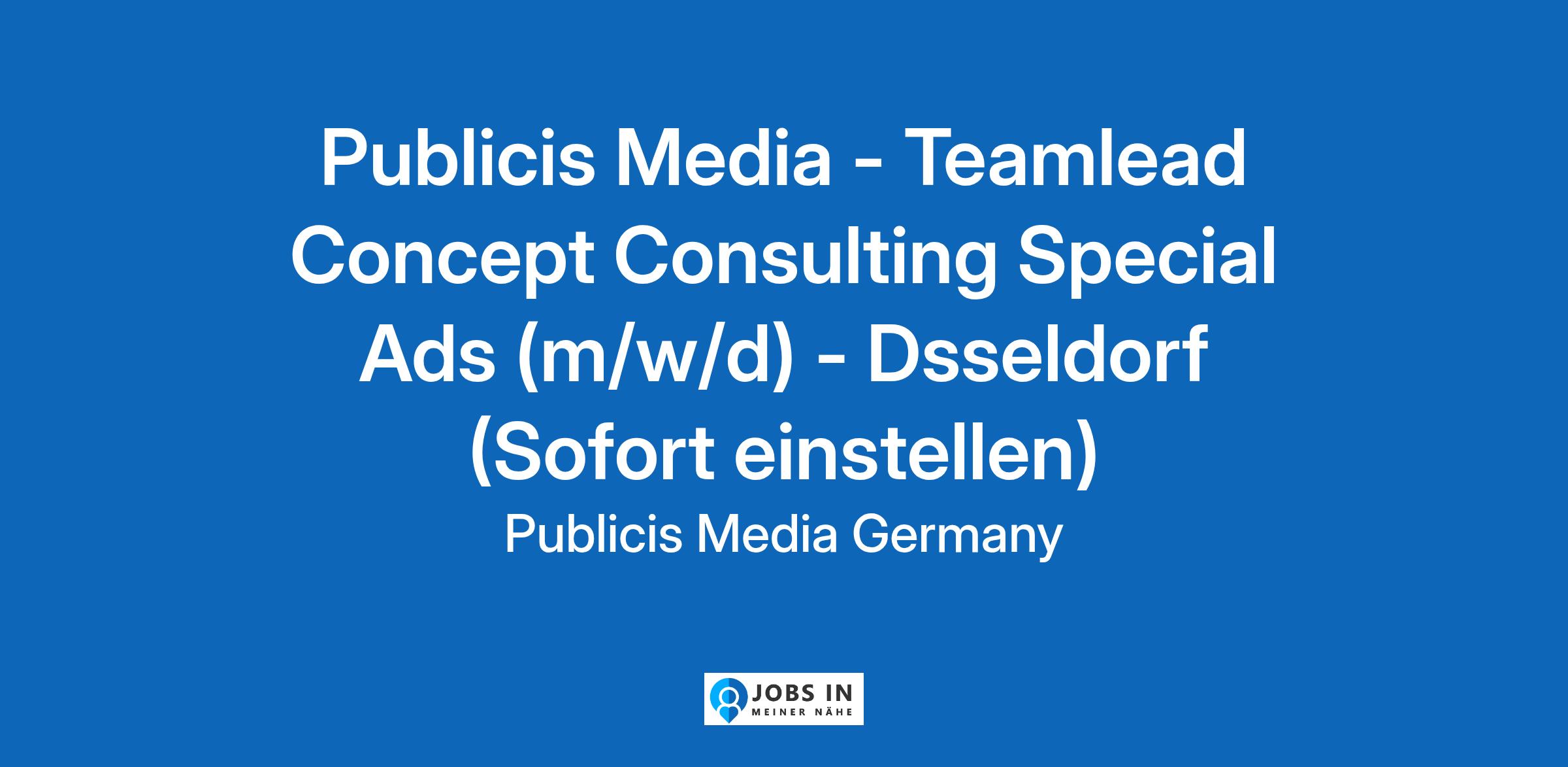 Wir suchen fr unseren Standort Dsseldorf ab sofort einen Teamlead Concept Consulting (m/w/d) im Bereich Sonderwerbeformen/Special Ads.