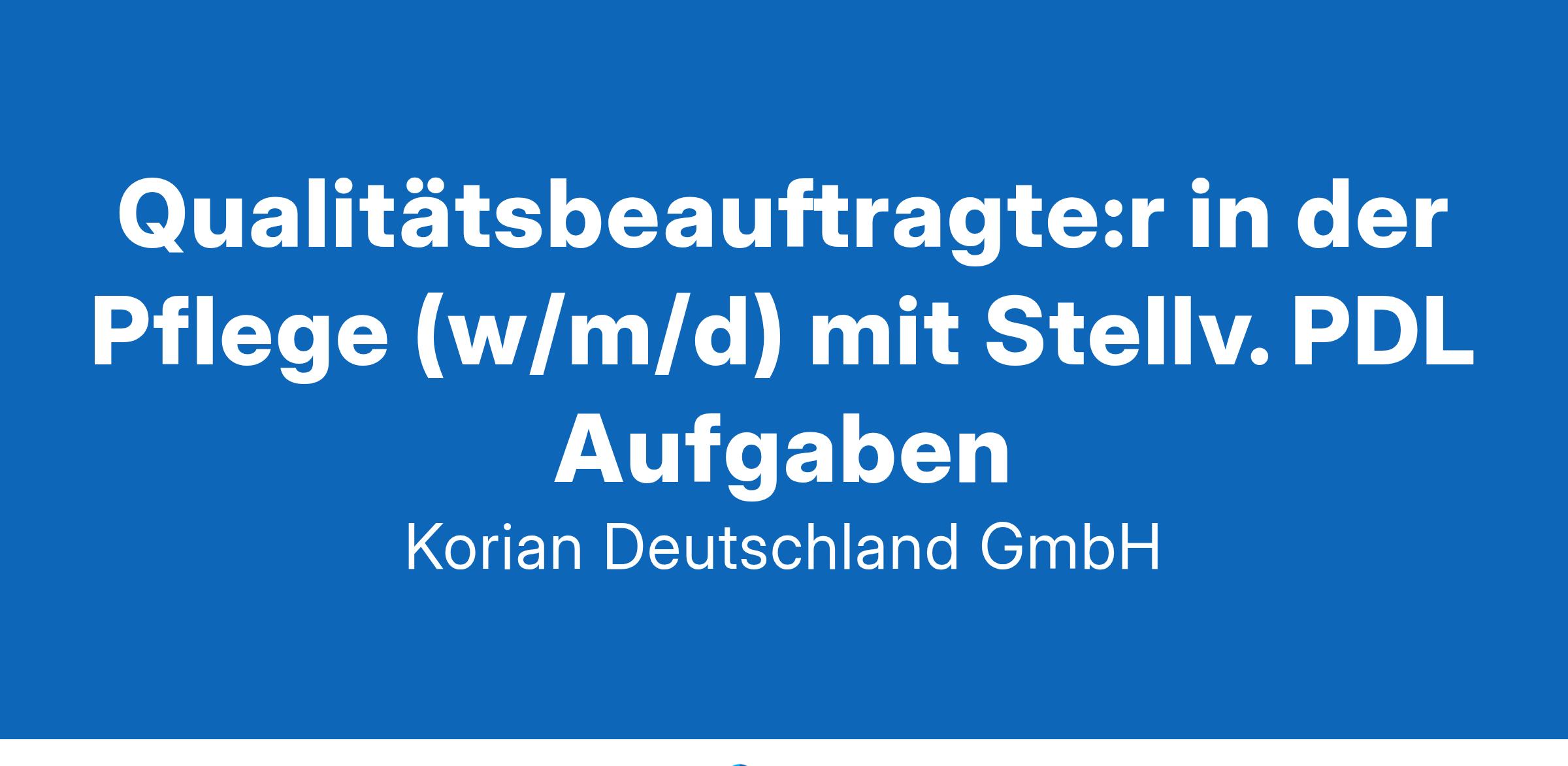 Aufgaben Qualitätsbeauftragte:r in der Pflege (w/m/d): alles im Griff! Bei Korian kümmern sich Mitarbeiter:innen auf höchstem Niveau um pflegebedürftige Menschen. Mit diesem Stellenangebot für eine:n Qualitätsbeauftragte:n in der Pflege (w/m/d) suchen wir nach Menschen, die Standards für eine Branche setzen wollen. Deine Aufgaben als Qualitätsbeauftragte:r in der Pflege (w/m/d) Nur durch interne und externe Qualitätssicherung in der Pflege stellen wir sicher, dass wir höchste Standards einhalten. Als Qualitätsbeauftragte:r (w/m/d) bist Du insbesondere für interne Abläufe verantwortlich. Ein paar Beispiele für interne Qualitätssicherung in der Pflege und damit aus Deinen Aufgaben: Begleitung von in- und externen Audits Durchführung qualitätssichernder Maßnahmen im Rahmen unseres Qualitätsmanagements Enger Austausch mit der Einrichtungsleitung und dem Total Quality Management Mitwirkung bei der Sicherstellung einer hohen Pflegequalität unter Einhaltung gesetzlicher Vorgaben Mitgestaltung des Pflege- und Betreuungsprozesses Umsetzung aktueller pflegefachlicher und wissenschaftlicher Erkenntnisse in die tägliche Arbeit Anforderungen Das bringst Du für den Job als Qualitätsbeauftragte:r in der Pflege (w/m/d) mit Hast Du Lust, bei Korian dafür zu sorgen, dass wir auch weiterhin nur das Beste für die uns anvertrauten Menschen erreichen? Bei der Qualitätssicherung in der Pflege setzt Du unsere Werte in die Tat um. Abgeschlossene Berufsausbildung in der Alten- bzw. Gesundheits- und Krankenpflege Weiterbildung zum Qualitätsbeauftragten (w/m/d) erforderlich Berufs- und Leitungserfahrung in einer ähnlichen Position Freude an der Arbeit mit älteren und pflegebedürftigen Menschen Kommunikationstalent, Zuverlässigkeit und Einsatzbereitschaft Benefits Das bieten wir Dir in der Qualitätssicherung in der Pflege (w/m/d) Wertschätzung für Dich und das, was Du täglich leistest Vielfältige Möglichkeiten zur Fort- und Weiterbildung bei voller Übernahme der Kosten und Freistellung Attraktives Korian Vergütungsmodell mit transparenter Gehaltsentwicklung nach Worx Treueprämien (Sommer + Winter), Zeitzuschläge über Branchendurchschnitt, faire Qualifikationszulagen, Firmenjubiläumsprämien Umfangreiches Mitarbeiterwerbungsprogramm mit attraktiven Konditionen Mitarbeiterrabatte bei vielen Partnern Korian Job Bike Korian-Benefit-Card für besondere Leistungen Humanoo Gesundheits-App Betriebliche Altersvorsorge und Berufsunfähigkeitsversicherung 30 Tage Urlaub + großzügige Sonderurlaubstage 5-Tage Woche mit flexibler, frühzeitiger Dienstplanung Schwerbehinderte Bewerberinnen und Bewerber werden bei gleicher Eignung besonders berücksichtigt Das klingt ganz nach Dir? Dann bewirb Dich in wenigen Schritten online und werde Qualitätsbeauftragte:r in der Pflege (w/m/d) bei Korian. Wir freuen uns auf Deine Bewerbung! Über Korian„Jeden in Zeiten der Verletzlichkeit in seiner Einzigartigkeit achten.“ Das ist die zentrale Aufgabe, der die rund 22.500 Mitarbeiter:innen der Korian Deutschland GmbH täglich nachgehen. Verbunden durch gemeinsame Werte – Vertrauen, Initiative und Verantwortung – stehen wir fest an der Seite unserer Pflegebedürftigen und gehen auf ihre individuellen Bedürfnisse ein. Wir fördern Innovationen, um Menschen präventive Lösungen sowie kontinuierliche Unterstützung zu bieten. Die Korian Deutschland GmbH betreibt rund 230 Einrichtungen sowie 27 ambulante Dienste deutschlandweit und ist Teil der europäischen Clariane Familie, dem führenden europäischen Anbieter in den Bereichen Pflege, medizinische Versorgung und Betreuung zu Hause, für Menschen, die auf Hilfe angewiesen sind. Für unser Engagement wurden wir 2024 zum vierten Mal in Folge mit dem renommierten TOP EMPLOYER Siegel ausgezeichnet – als erstes Unternehmen der Pflegebranche in Deutschland. Erfahre, welche beruflichen Möglichkeiten noch auf dich warten, und werde Teil unserer großen Community. ]]>