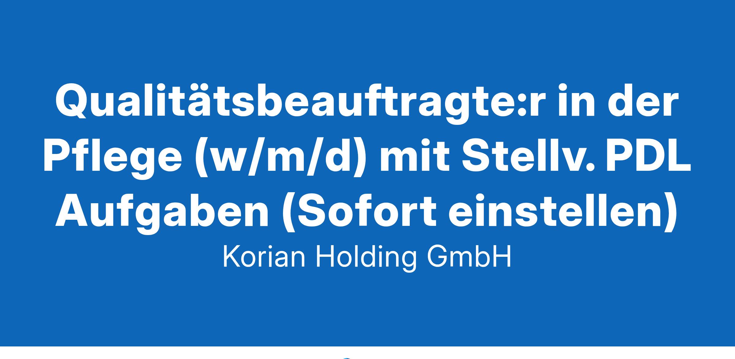 ~ Schwerbehinderte Bewerberinnen und Bewerber werden bei gleicher Eignung besonders berücksichtigtDann bewirb Dich in wenigen Schritten online und werde Qualitätsbeauftragte:r in der Pflege (w/m/d) bei Korian. Wir fördern Innovationen, um Menschen präventive Lösungen sowie kontinuierliche Unterstützung zu bieten. Die Korian Deutschland GmbH betreibt rund 230 Einrichtungen sowie 27 ambulante Dienste deutschlandweit und ist Teil der europäischen Clariane Familie, dem führenden europäischen Anbieter in den Bereichen Pflege, medizinische Versorgung und Betreuung zu Hause, für Menschen, die auf Hilfe angewiesen sind.