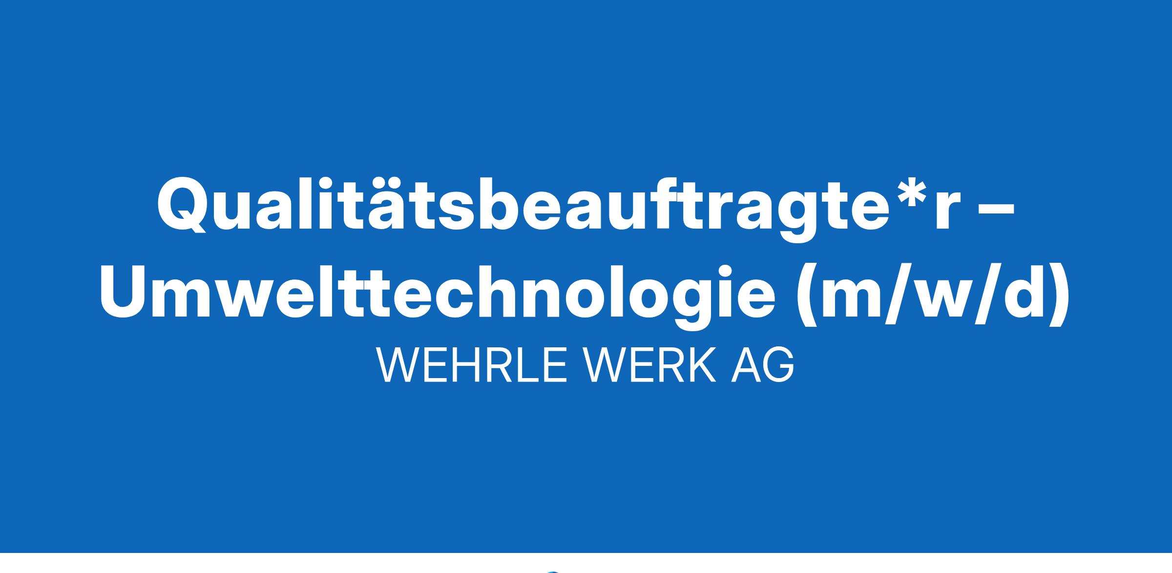 Karriere bei WEHRLE:Internationale Tätigkeit trifft auf lokale VerwurzelungWEHRLE ist ein Pionier und Technologieführer für die Behandlung spezieller Abfälle und komplexer Abwässer. Mit dem kompletten Spektrum von verfahrenstechnischer Dimensionierung, hauseigener Großteilefertigung, kundenspezifischem Anlagenbau bis hin zu praxisbewährten Dienstleistungen unterstützt das 1860 gegründete GreenTech-Unternehmen öffentliche und private Betriebe bei der Erreichung ihrer Umweltziele und Erhöhung der Ressourceneffizienz. Mit Anlagen in über 45 Ländern und auf 5 Kontinenten steht das in der 6. Generation eigentümergeführte Unternehmen in 100%igem Familienbesitz im wachsenden Markt für Umwelttechnologie für Innovation, Zuverlässigkeit, Nachhaltigkeit und vertrauensvolle Zusammenarbeit mit den regionalen und internationalen Partnern.Kommen Sie in unser Team alsQualitätsbeauftragte*r – Umwelttechnologie (m/w/d)am Stammsitz in EmmendingenWas Sie bei uns tunSie sind verantwortlich für die Überwachung und Weiterentwicklung unseres Qualitätsmanagementsystems nach DIN EN ISO 9001 und stellen sicher, dass alle Mitarbeiter*innen die Qualitätsstandards verstehen und umsetzen.In Ihrer Funktion als Qualitätsbeauftragte*r sind Sie zudem für die Identifikation und das Management von Risiken zuständig, die die Umwelt, die Gesundheit und die Sicherheit am Arbeitsplatz betreffen.Sie führen interne Audits durch und unterstützen externe Audits, um sicherzustellen, dass wir alle gesetzlichen und internen Anforderungen erfüllen.Ihre analytischen Fähigkeiten nutzen Sie, um Abweichungen von den Qualitätsstandards zu identifizieren und geeignete Maßnahmen zur Verbesserung und Effizienzsteigerung zu ergreifen.Was Sie mitbringen solltenAbgeschlossenes Studium im Bereich Umwelttechnik, Ingenieurwesen oder Wirtschaftswissenschaften.Mehrjährige Erfahrung im Bereich Qualitätsmanagement und Kenntnisse der ISO-9001-Normen.Praktische Erfahrung im Prozessmanagement sowie in der Durchführung von Audits.Sehr gute Deutsch- und Englischkenntnisse.Eine proaktive und teamorientierte Persönlichkeit, die sowohl strategisch als auch operativ denkt.Von uns - für SieEine leistungsgerechte Vergütung sowie Weihnachts- und Urlaubsgeld.30 Tage Urlaub pro Jahr.Flexible Arbeitszeiten und die Möglichkeit von Homeoffice.Betriebliche Altersvorsorge.Attraktive Mobilitätsangebote, wie JobRad und JobTicket.Kostenlose Parkmöglichkeiten.Zugang zu Firmenfitnessprogrammen.Zuschüsse für die Kinderbetreuung.Regelmäßige Teamevents zur Stärkung des Zusammenhalts.Zentrale Lage mit guter Anbindung an den öffentlichen Nahverkehr.Ein wertschätzendes und respektvolles Arbeitsumfeld.Eine sinnvolle Tätigkeit in einem nachhaltigen Unternehmensumfeld.Eine attraktive Region mit zahlreichen Freizeitmöglichkeiten.Sie möchten mit unserem Familienunternehmen die Welt erobern?Dann freuen wir uns auf Ihre Bewerbung! Bei Fragen steht Ihnen Sabine Gschwander unter Tel.: Jetzt bewerbenoder per E-Mail an: Jetzt bewerben gerne zur Verfügung.Hier bewerbenWEHRLE-WERK AG | Bismarckstraße 1-11 | D-79312 Emmendingen | Jetzt bewerben