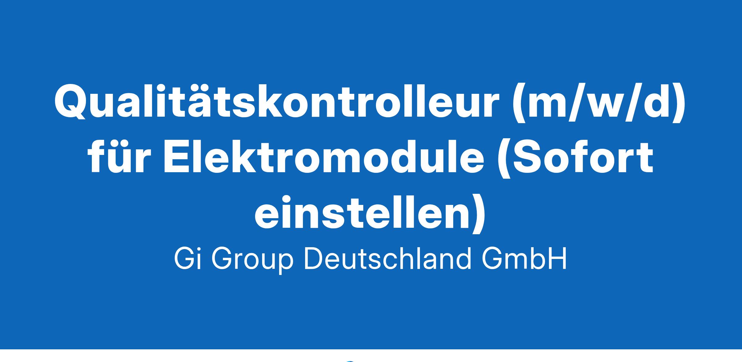 Qualitätskontrolleur (m/w/d) für Elektromodule (Sofort einstellen)
