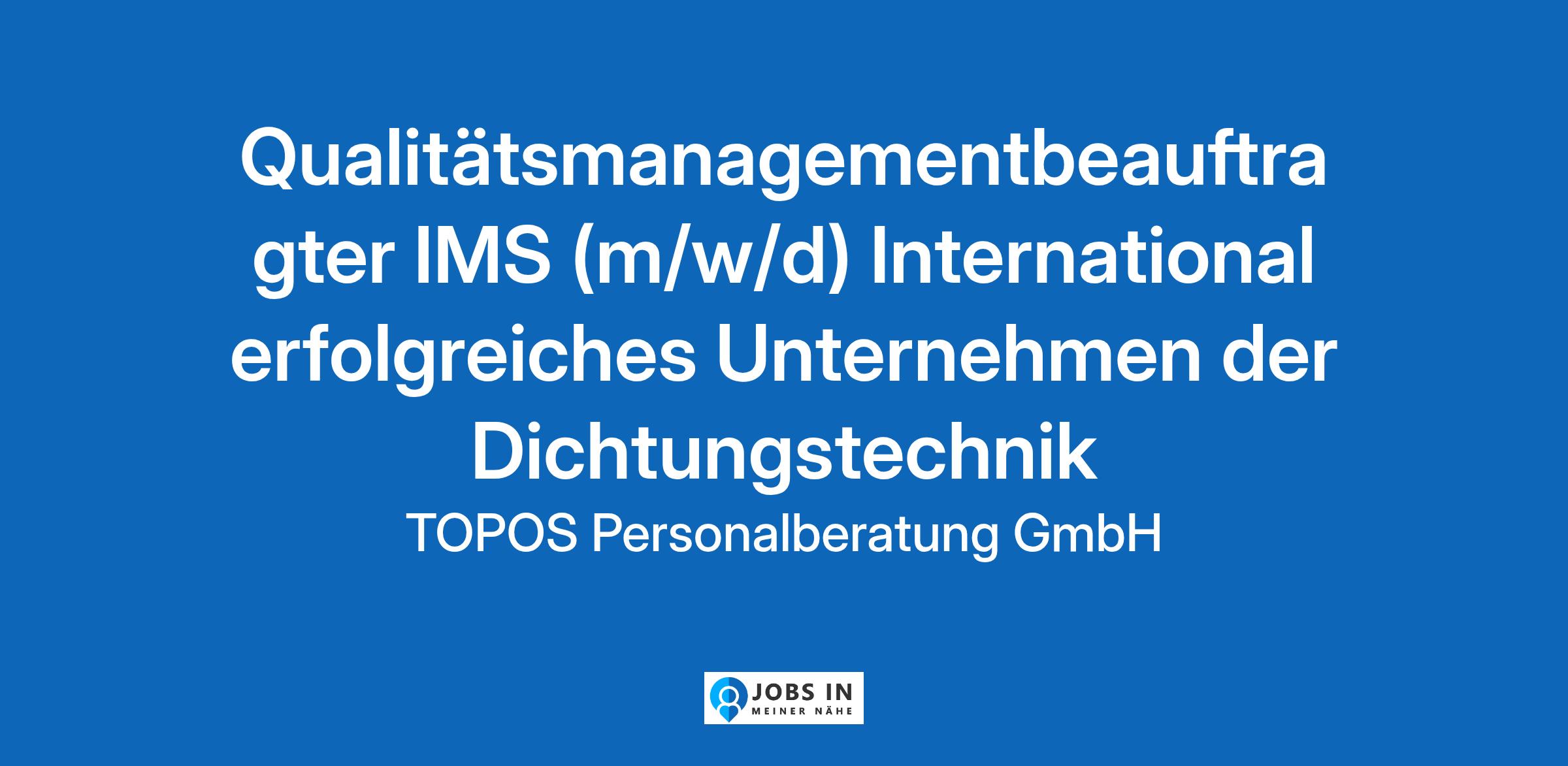 Qualitätsmanagementbeauftragter IMS (m/w/d) International erfolgreiches Unternehmen der Dichtungstechnik