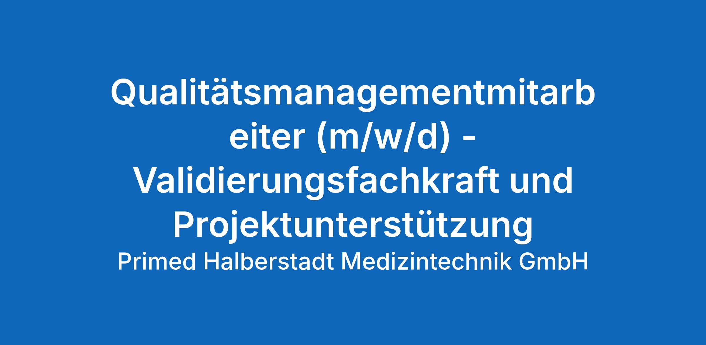 Qualitätsmanagementmitarbeiter (m/w/d) zum Einsatz als Validierungsfachkraft und zur Projektunterstützung in der Betriebsleitung