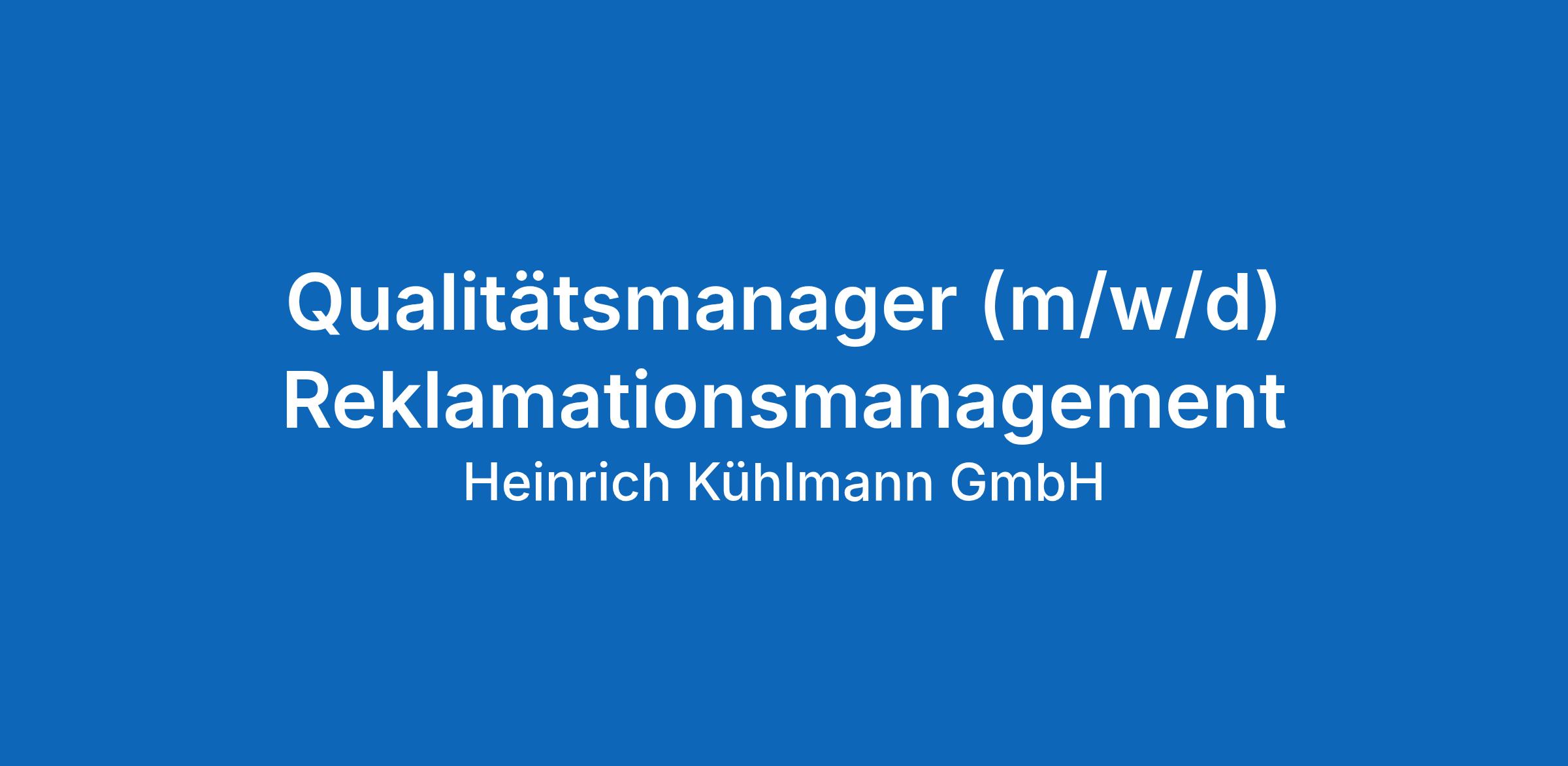 Qualitätsmanager (m/w/d) Reklamationsmanagement