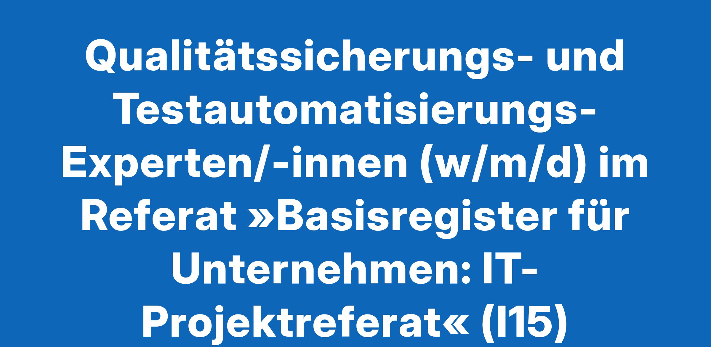 Qualitätssicherungs- und Testautomatisierungs-Experten/-innen (w/m/d) im Referat »Basisregister für Unternehmen: IT-Projektreferat« (I15)