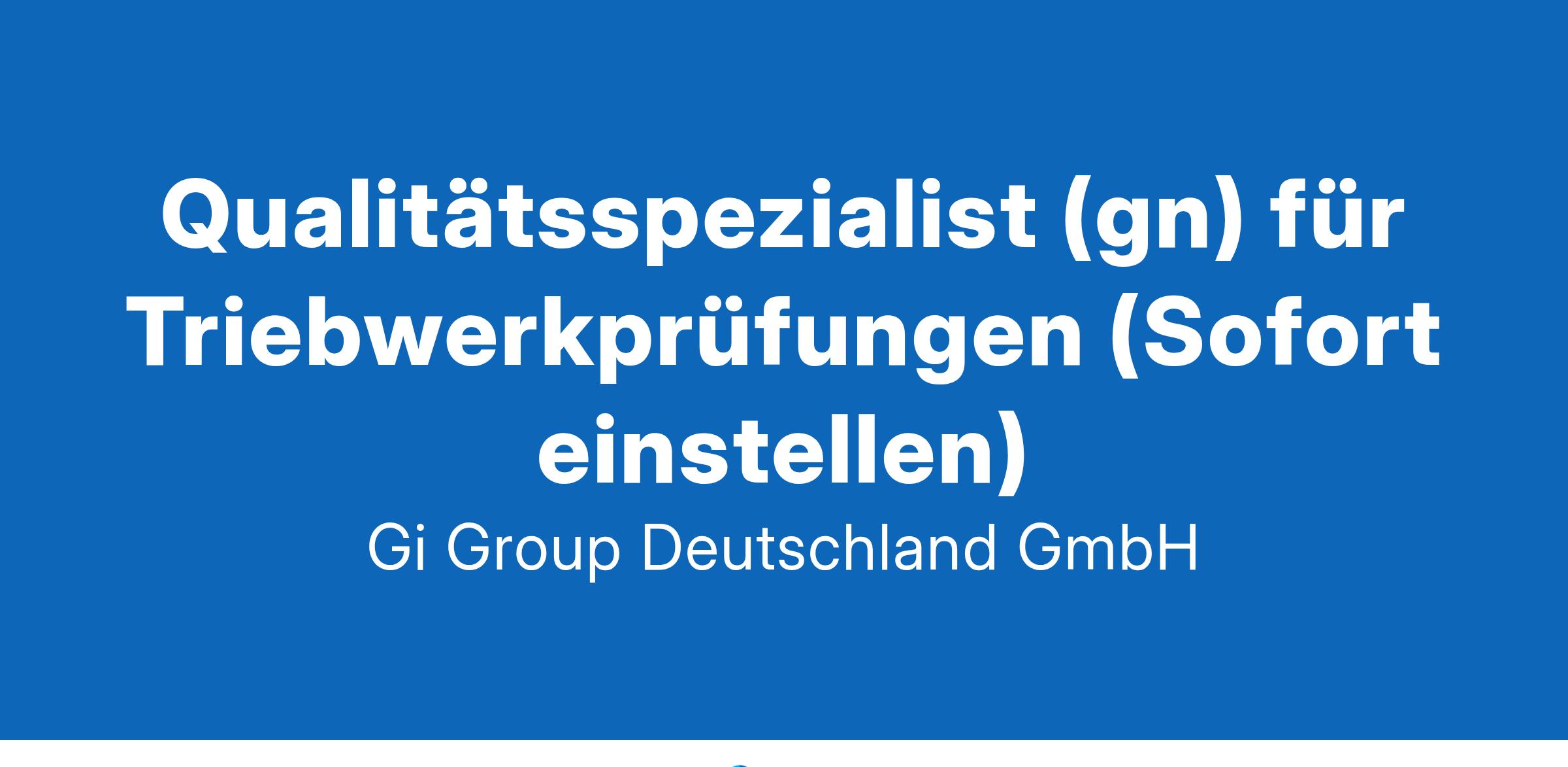 Qualitätsspezialist (gn) für Triebwerkprüfungen (Sofort einstellen)