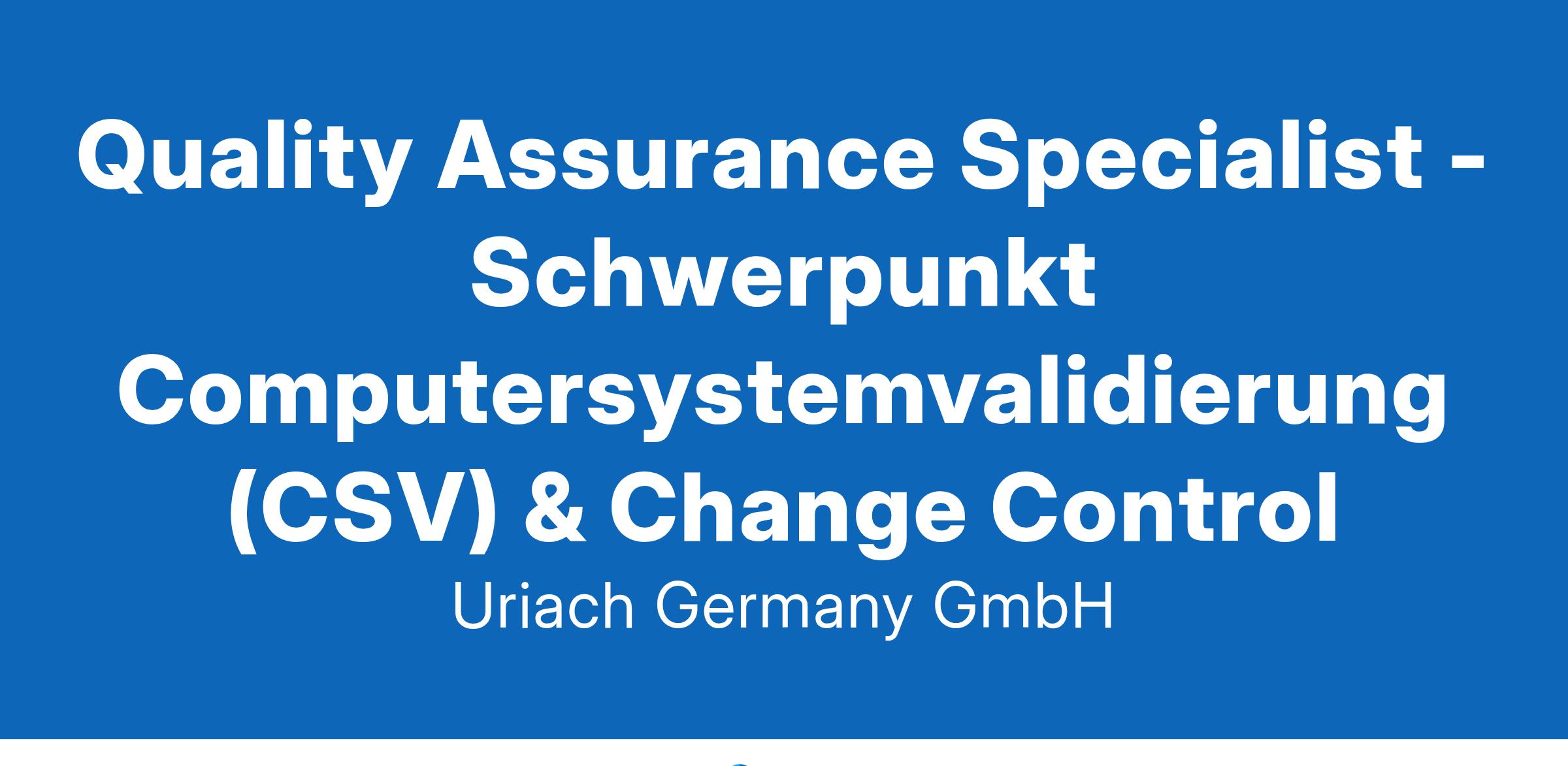 Quality Assurance Specialist - Schwerpunkt Computersystemvalidierung (CSV) & Change ControlIhr Aufgabengebiet:Planung, Koordination und Umsetzung der Validierung von computergestützten Systemen gemäß den geltenden Vorschriften