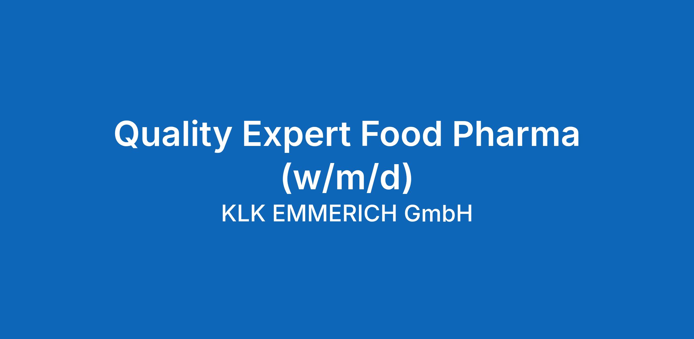 Quality Expert Food Pharma (w/m/d)