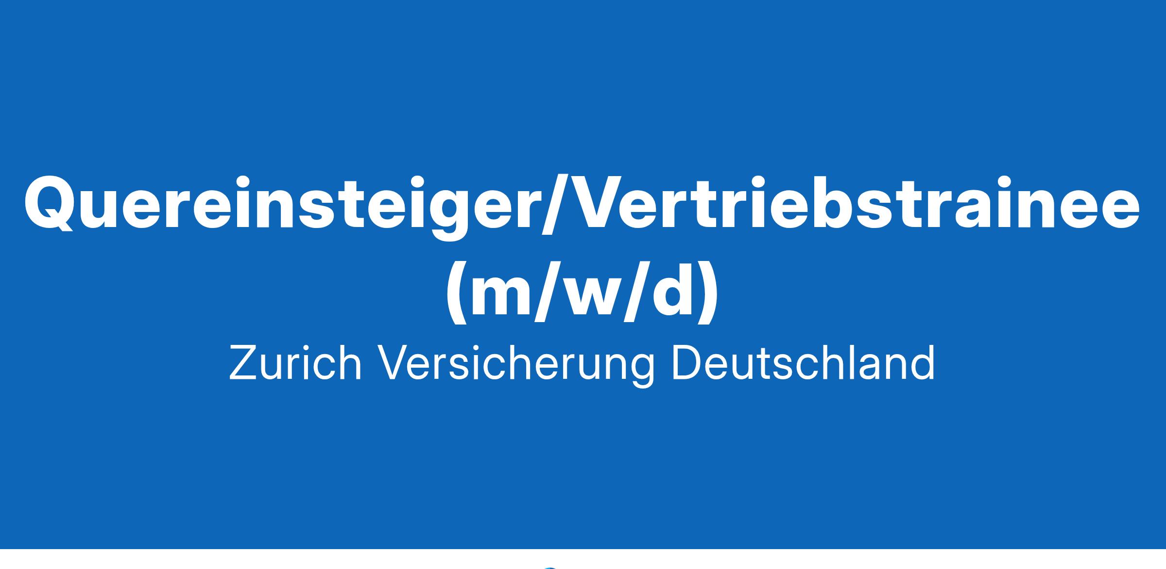 Unser richtet sich an Quereinsteiger/innen mit kaufmännischem Grundwissen und ist somit der Startschuss für deine Karriere bei Zurich. Bei erfolgreichem Abschluss des Programms erwartet dich eine Festanstellung in der Agentur sowie die Weiterbildung zum/zur professionellen Kundenberater/in.Deine AufgabenStarte deine Karriere im Zurich Exklusivvertrieb und werde Teil des Traineeprogramms. Es erwarten dich spannende und herausfordernde Möglichkeiten: Du analysierst und optimierst die aktuelle Versicherungssituation der Kunden mit modernen Vertriebsansätzen Du arbeitest aktiv mit dem Agenturinhaber in einem langjährig gewachsenen Bestand Durch deine Leidenschaft für den Vertrieb baust du den Kundenstamm kontinuierlich aus Wir überzeugen durch Kundennähe. Daher berätst du Kunden vor Ort oder per Videoberatung Dein Plus: Eine und ein . So meisterst du schnell jede Herausforderung und profitierst von und hervorragenden Chancen bei einer namhaften Versicherungsagentur.Dein Profil Abgeschlossene kaufmännische Berufsausbildung, Studienabbrecher oder Vergleichbares Spaß am Umgang mit Menschen Leidenschaft für den Vertrieb und Verkauf Du bist überzeugungs- und kommunikationsstark und punktest mit deiner Art Du verfügst über den Führerschein Klasse B und Grundkenntnisse in MS Office Das erwartet dich Mit deinen Fähigkeiten in Kundenkontakt und Beratung aus anderen Dienstleistungsbranchen oder als Studienabbrecher bist du bestens für einen erfolgreichen Einstieg bei uns vorbereitet. Wir bereiten dich im Hause der Zurich Gruppe Deutschland vom ersten Tag an mit einer intensiven Einarbeitungsphase vor, in der du alle notwendigen Kenntnisse und Fähigkeiten erwirbst, um im Vertrieb erfolgreich zu sein. Präsenz- und Online-Trainings machen dich mit den Highlights der Zurich Produkte vertraut und zum Experten. Unsere praxisnahen Workshops bereiten dich perfekt auf erfolgreiche Beratung und Verkauf vor.
