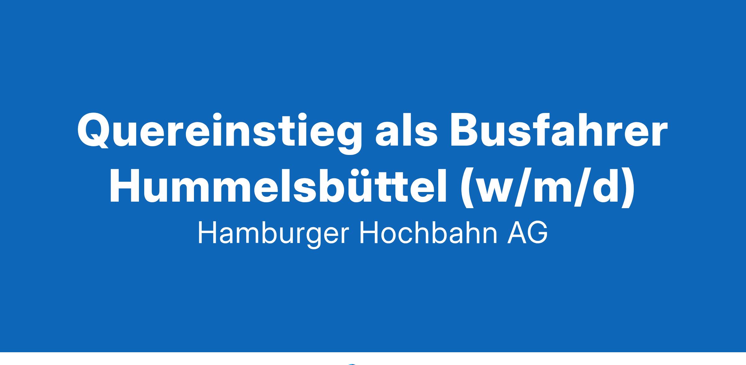 Du – deine Rolle bei uns Für den Busbetriebshof Hummelsbüttel brauchen wir dich! Deine Aufgaben – das machst du bei uns Du beförderst unsere Fahrgäste sicher und zuverlässig im Linienverkehr des Hamburger Stadtgebiets. Du gibst Fahrgästen Auskunft über Fahr- und Anschlussverbindungen. Dein Profil – das bringst du mit Deinen EU-Führerschein der Klasse B besitzt du seit mindestens 2 Jahren. Wenn du den Führerschein der Klasse D noch nicht besitzen solltest, ist das kein Problem. Wir bilden dich in unserer betriebseigenen Busfahrschule aus. Du bist mindestens 21 Jahre alt. Du arbeitest sehr kundenorientiert und bringst gute Deutschkenntnisse mit. Hilfsbereitschaft und Freundlichkeit zählen zu deinen Eigenschaften. Schicht- und Wochenendarbeit ist für dich kein Hindernis. Vergütung: Während der Ausbildung: 3.026,00 Euro brutto (mtl.). Nach abgeschlossener Ausbildung 3.277,00 Euro brutto (mtl.) plus Zuschläge.Deine Benefits – das bieten wir dir39-Stunden-Woche