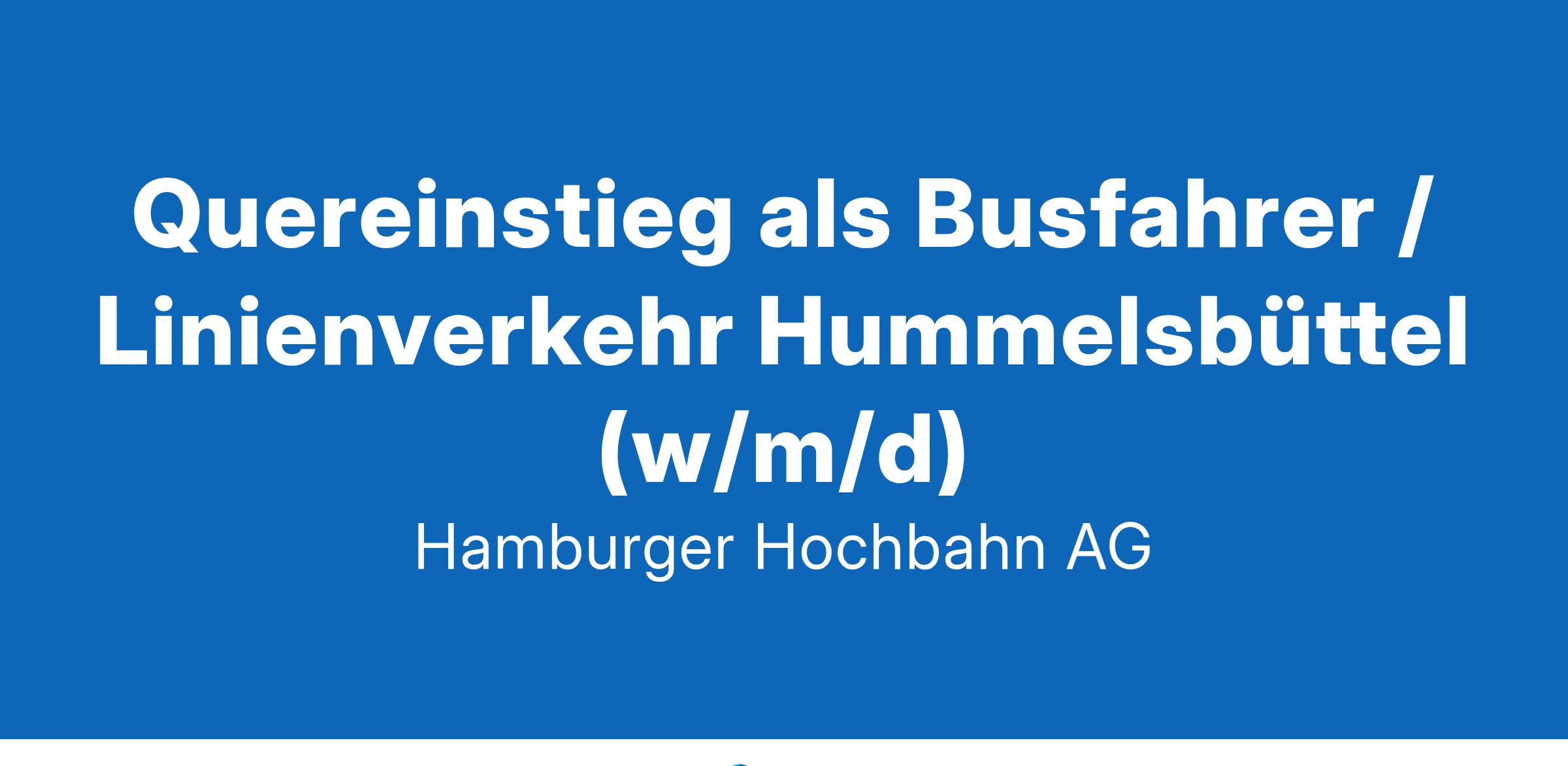 Du – deine Rolle bei uns Für den Busbetriebshof Hummelsbüttel brauchen wir dich! Deine Aufgaben – das machst du bei uns Du beförderst unsere Fahrgäste sicher und zuverlässig im Linienverkehr des Hamburger Stadtgebiets. Du gibst Fahrgästen Auskunft über Fahr- und Anschlussverbindungen. Dein Profil – das bringst du mit Deinen EU-Führerschein der Klasse B besitzt du seit mindestens 2 Jahren. Wenn du den Führerschein der Klasse D noch nicht besitzen solltest, ist das kein Problem. Wir bilden dich in unserer betriebseigenen Busfahrschule aus. Du bist mindestens 21 Jahre alt. Du arbeitest sehr kundenorientiert und bringst gute Deutschkenntnisse mit. Hilfsbereitschaft und Freundlichkeit zählen zu deinen Eigenschaften. Schicht- und Wochenendarbeit ist für dich kein Hindernis. Vergütung: Während der Ausbildung: 3.026,00 Euro brutto (mtl.). Nach abgeschlossener Ausbildung 3.277,00 Euro brutto (mtl.) plus Zuschläge.Deine Benefits – das bieten wir dir39-Stunden-Woche