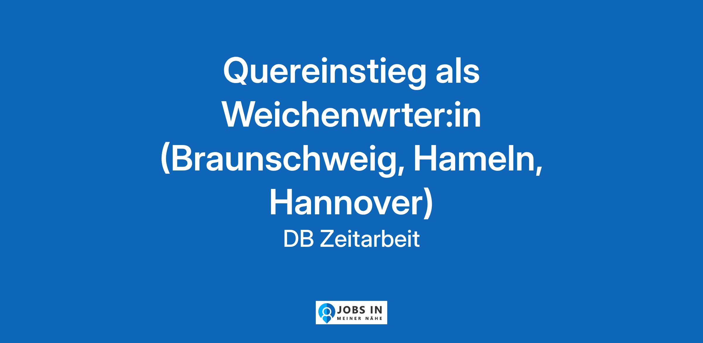 Zum Start im Januar 2026 suchen wir dich als Zeitarbeitnehmer:in im Auftrag der DB InfraGO AG fr einen Quereinstieg als Weichenwrter:in (w/m/d) am Standort Braunschweig, Hameln oder Hannover. Als Zeitarbeitnehmer:in erbringst du deine Arbeitsleistung direkt vor Ort im genannten Geschftsfeld, whrend du dein Arbeitsverhltnis mit uns, der DB Zeitarbeit, abschliet.