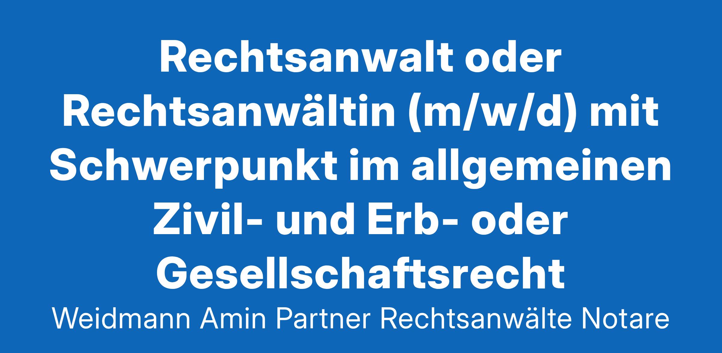 Sie verfügen idealerweise über erste Berufserfahrung im zivilrechtlichen Bereich, insbesondere Erfahrungen im allgemeinen Zivil- und Erbrecht oder Gesellschaftsrecht.