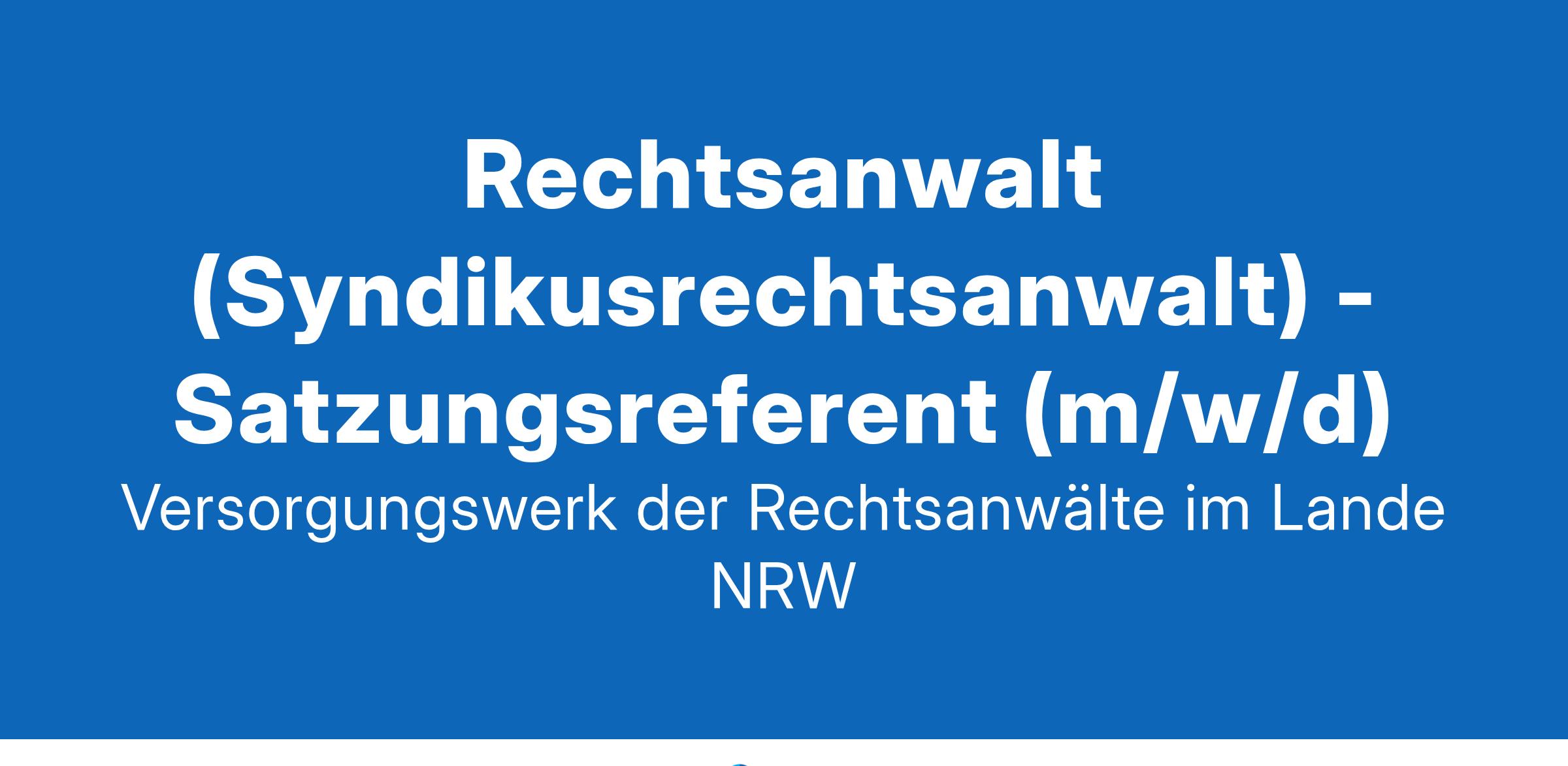 Rechtsanwalt (Syndikusrechtsanwalt) - Satzungsreferent (m/w/d)Diese Aufgaben warten auf Sie:Sie sind Anlaufstelle für die Prüfung komplexer rechtlicher Sachverhalte